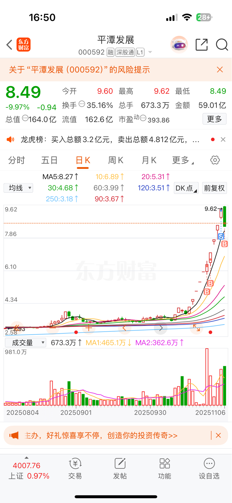 $平潭发展(SZ000592)$ 昨天还是一片叫好,破12,破20,今天一片哀嚎看空,哈哈哈小仓位试错反正吃了四十个点还点回去又怎样
