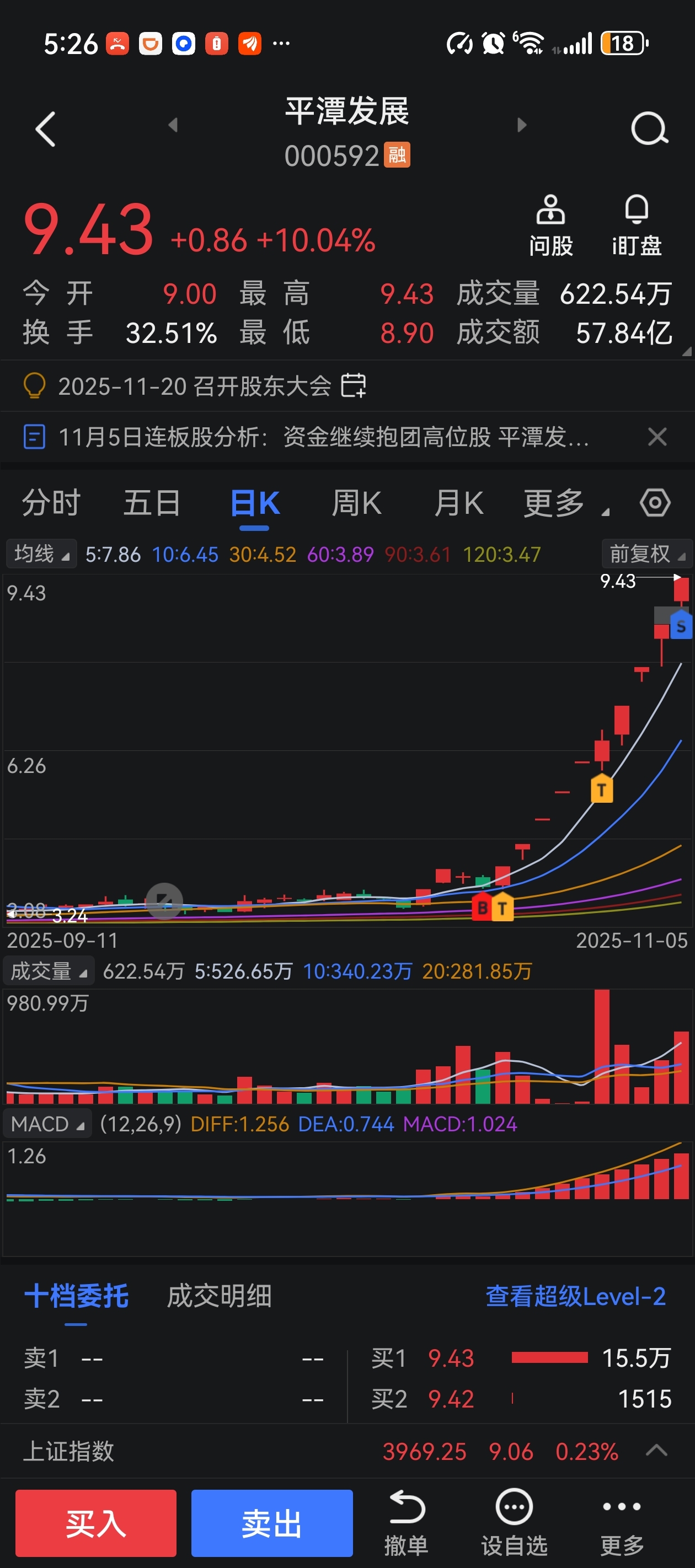 平潭发展,昨天的炸板,其实是没放量的,所以说,机构庄家大概还没走,但是来回炸板太多次,特别是顶处出现,那无论你是分析对的或者错的,跑是一定要跑得,因为跟前面几个板的,拉升对比,显然非常吃力,所以明显不符合预期,加上后排昨天全部跟不上去,所以今天大概率要回调。