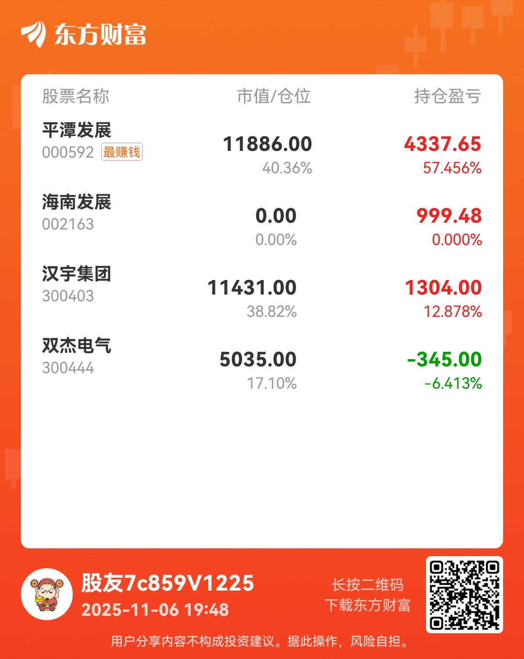 温馨提示: 1.根据《证券法》规定,禁止编造、传播虚假信息或者误导性信息,扰乱证券市场;2.用户在本社区发表的所有资料、言论等仅代表个人观点,与本网站立场无关,不对您构成任何投资建议。用户应基于自己的独立判断,自行决定证券投资并承担相应风险。《东方财富社区管理规定》