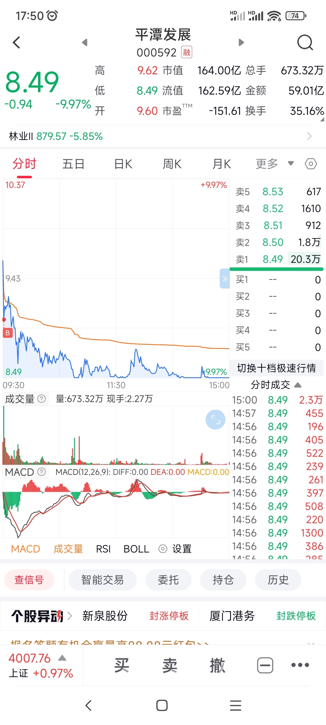 昨天跟朋友打赌说我只要一买保证跌,朋友不信,今天为了验证,直接开盘买了一手,果不其然跌停了