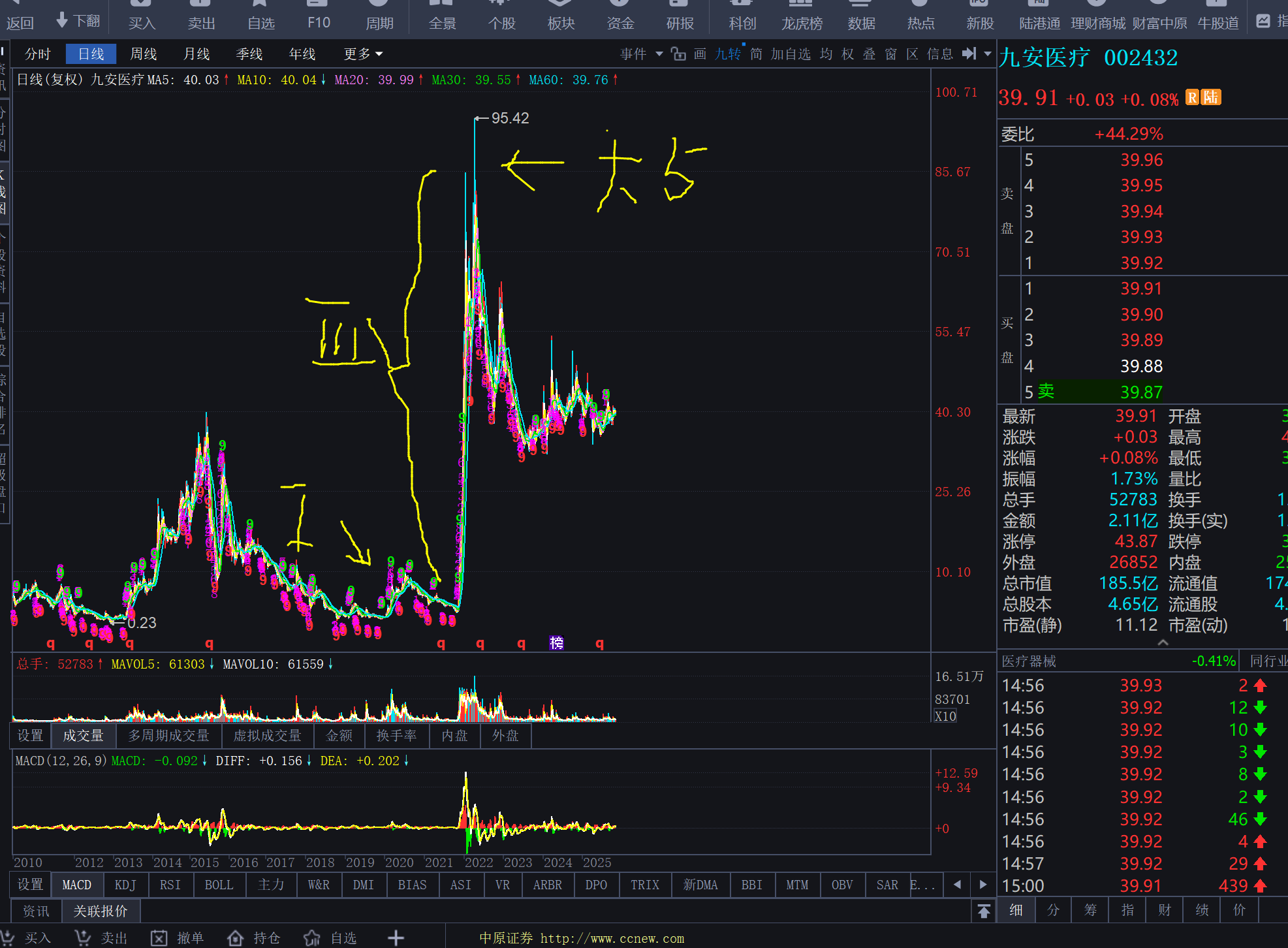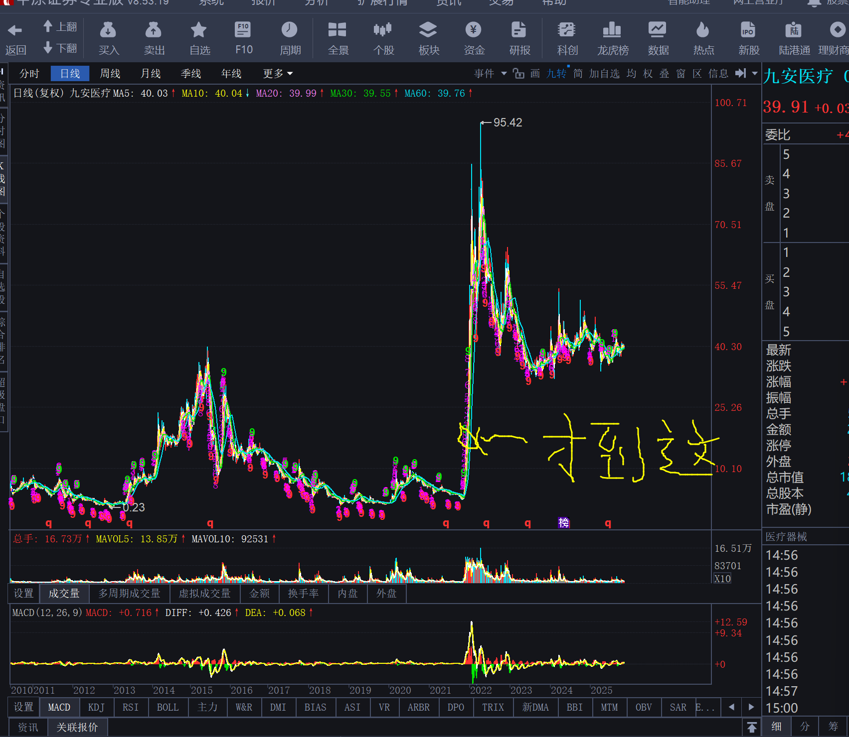 为啥敢和九安医疗比?我觉得九安只是一下子钱的事,咱这个意义比她大得多,最后也带来钱,有过之而无不及,当然可以拿九安医疗来比!!1您觉得呢?