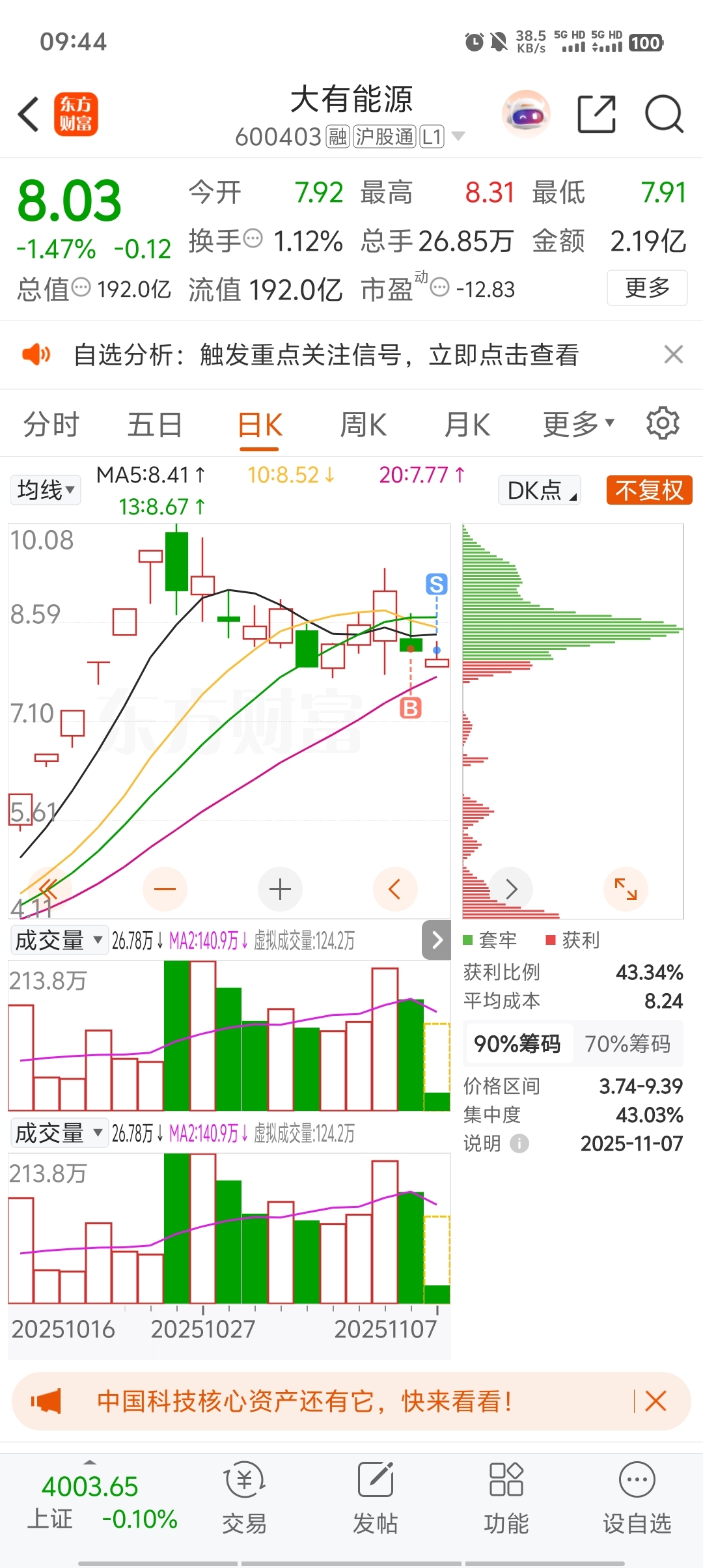 $平潭发展(SZ000592)$ 赚不到钱没关系红了没卖赚更多也没事,我就分批卖 绿一点卖,红了也卖,最终亏个十块钱 几乎横盘走就行。我宁可赚不到差价,我也不会去亏钱,然后继续找别的来回本,我只要做到卖出去最后不亏就行,机会天天有$大有能源(SH600403)$