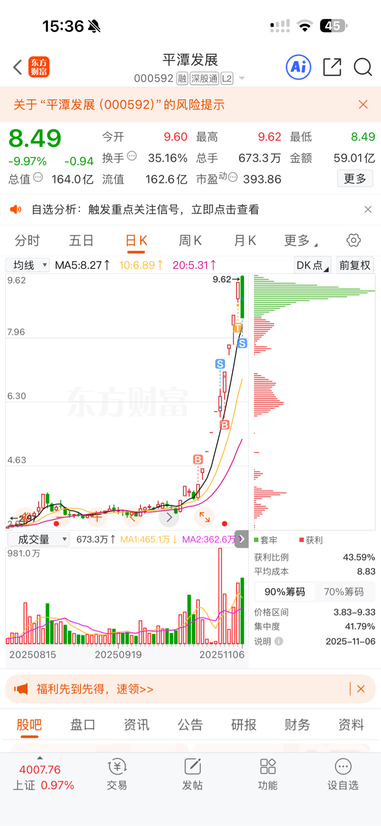 $平潭发展(SZ000592)$ 回本清仓不玩了,感谢平潭,24年10月入市腰斩亏了百分之70,现在已回本,祝各位亏损的兄弟早日上岸