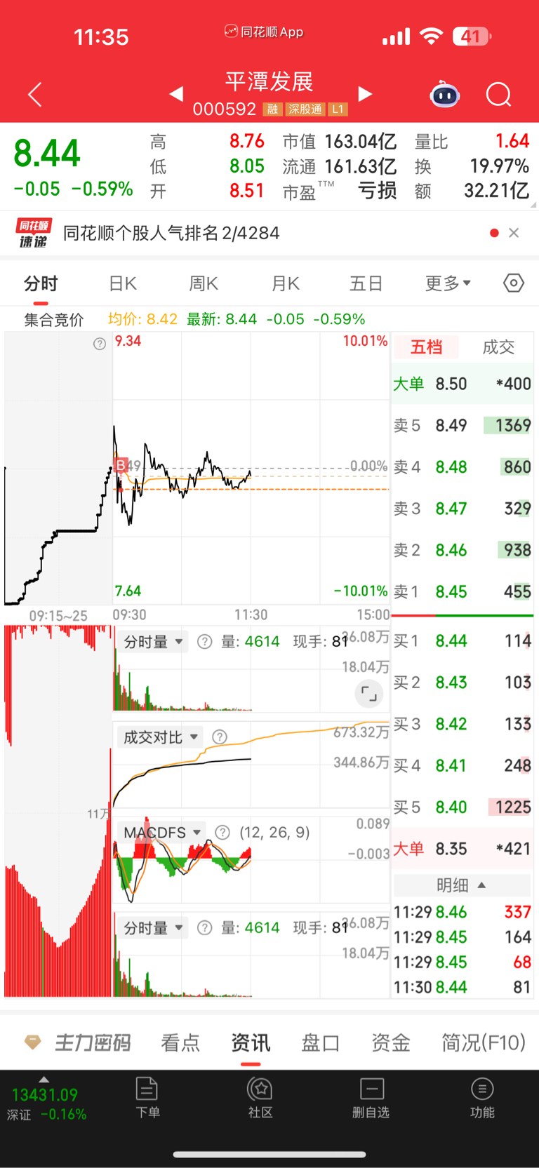 $平潭发展(SZ000592)$ 黑手全仓买入