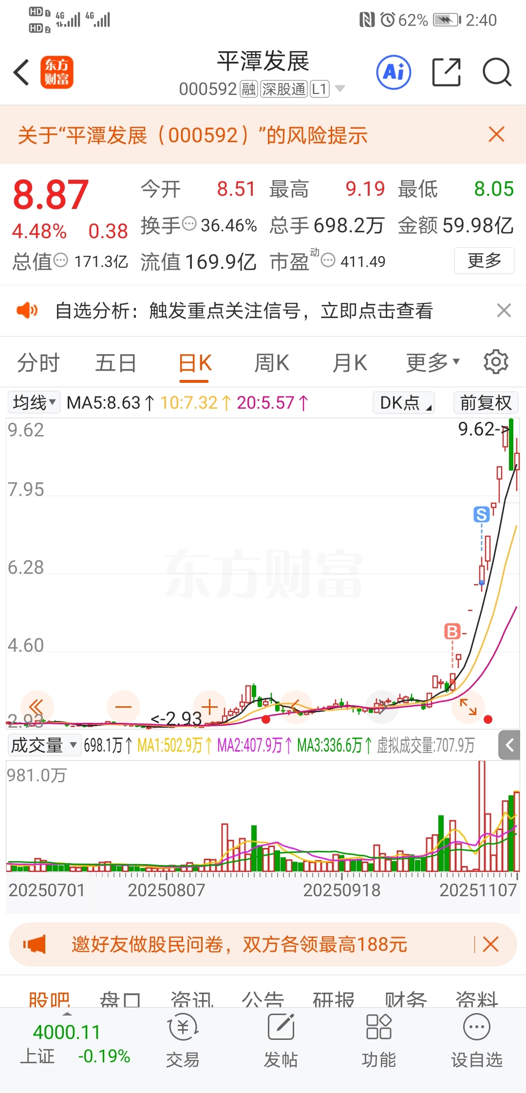 $平潭发展(SZ000592)$ 普通人真的不适合炒股,心态真的不行