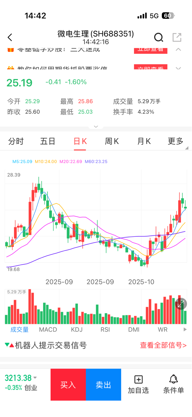 这个微电生理今天绿了,但是还是对它抱有希望,结合今天抛出的多一些啊,均线交叉确实