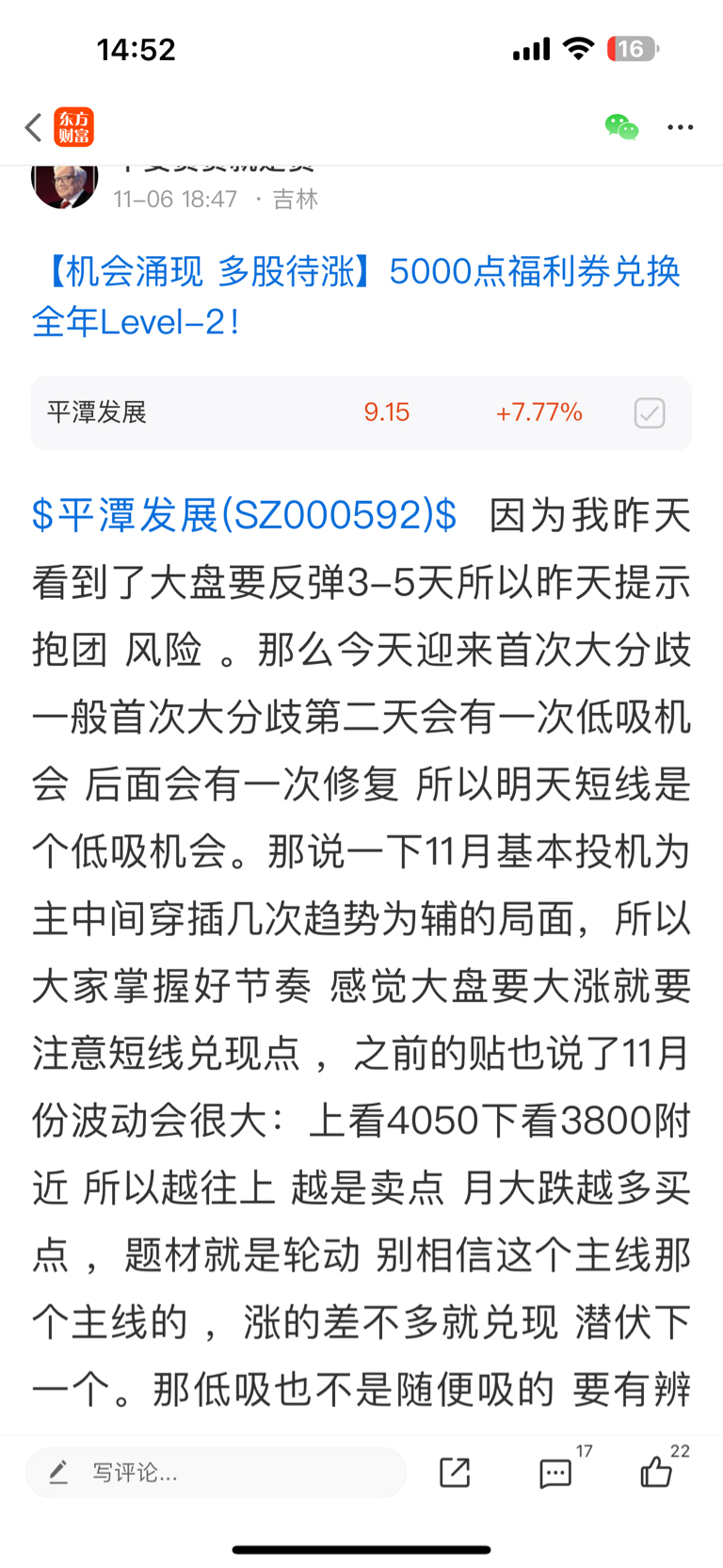 $平潭发展(SZ000592)$ 昨天说的思路是不是没毛病 今天投机票低吸都有肉