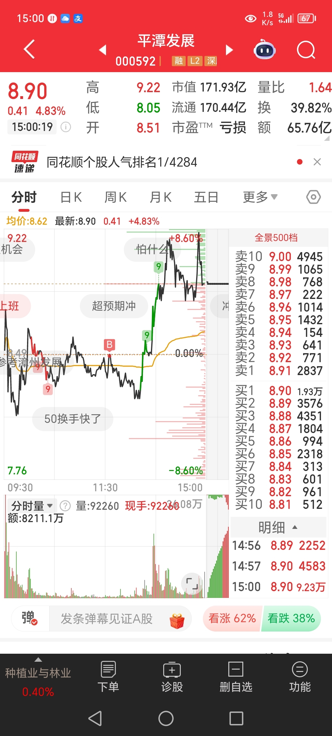 $平潭发展(SZ000592)$ 话说当年我双手插兜,从雪人出来立马杀进平潭。因为二板以上的周一都没买点所以不用高低切,那么就只有拥抱龙头。话说我昨晚就说了平潭是先锋龙,合富是主升龙一个陈小群把我吓得没敢进。进了平潭。唉!周一还有预期新龙带老龙吧。