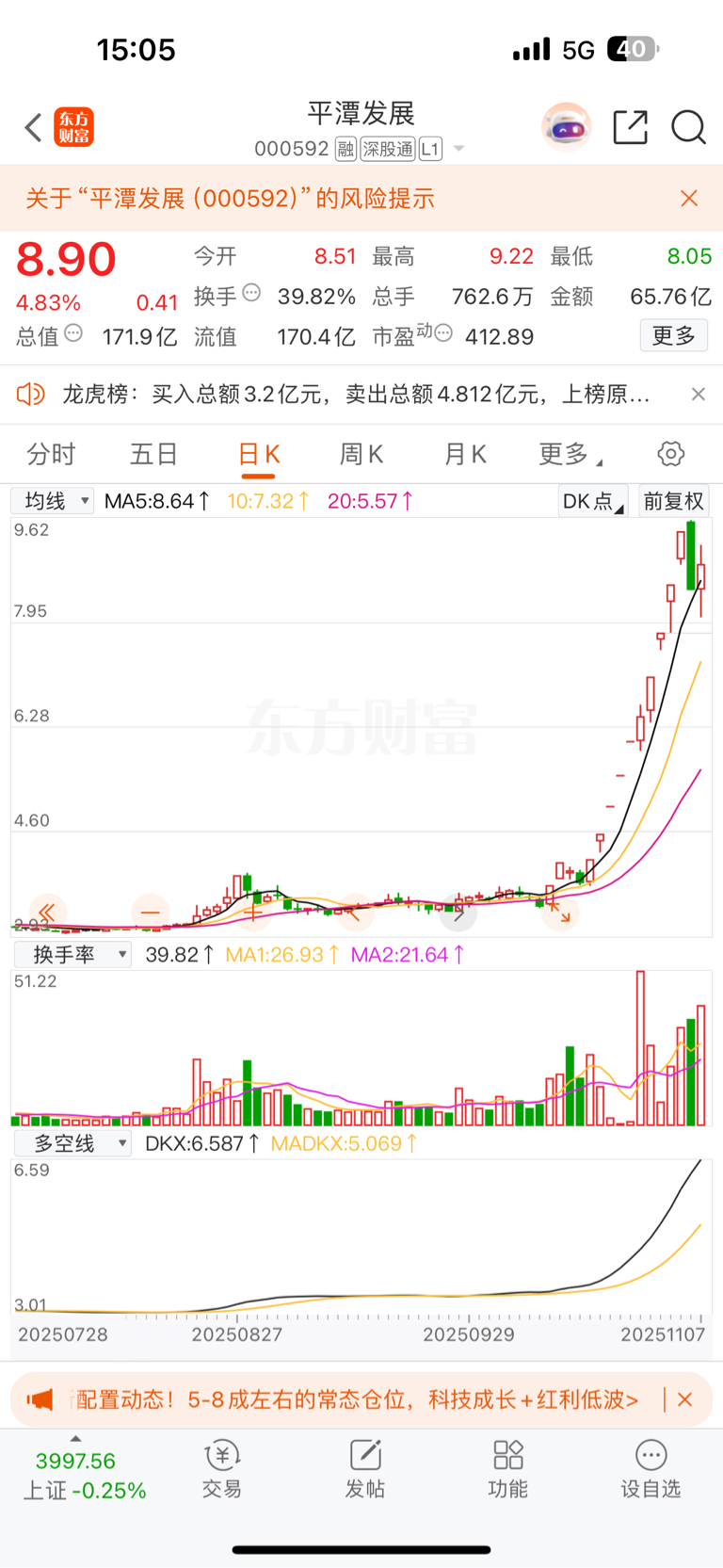 $平潭发展(SZ000592)$ 平潭很强,带动性非常牛,就是盘子大了点,看看盘面,合富完全是平潭带起来的,他的优势是盘子小,很多人今天唱空平潭,看看多头接了65亿,你越是看空他就越涨,你要是看多他就跌给你看,还有你管他是不是拉高出货,他今天不拉高,难道今天跌停给你看?#炒股日记# #复盘记录# #强势机会#
