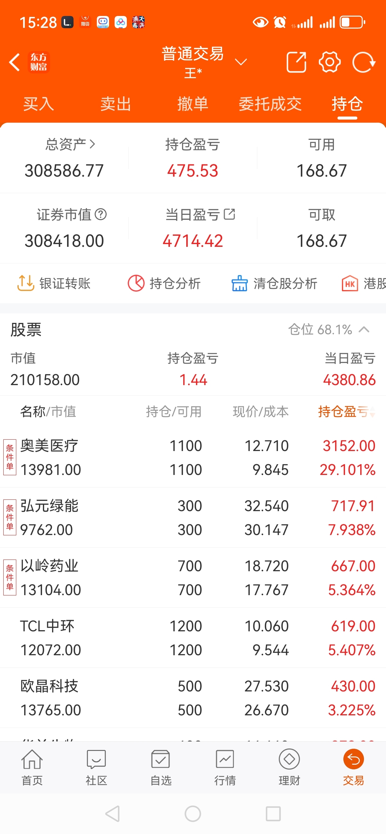 今天盈利4714元,4只股价接近涨停,重仓板块一直没有表现