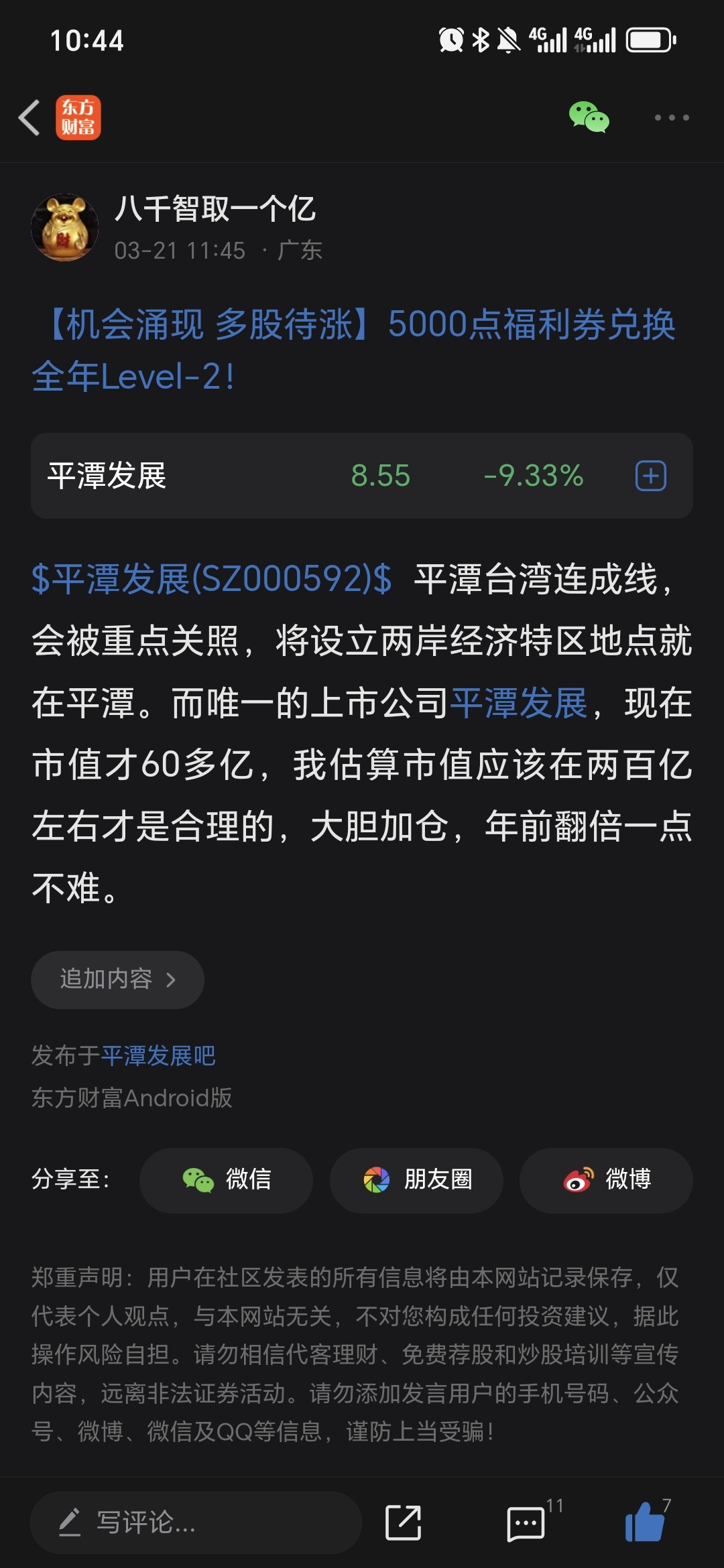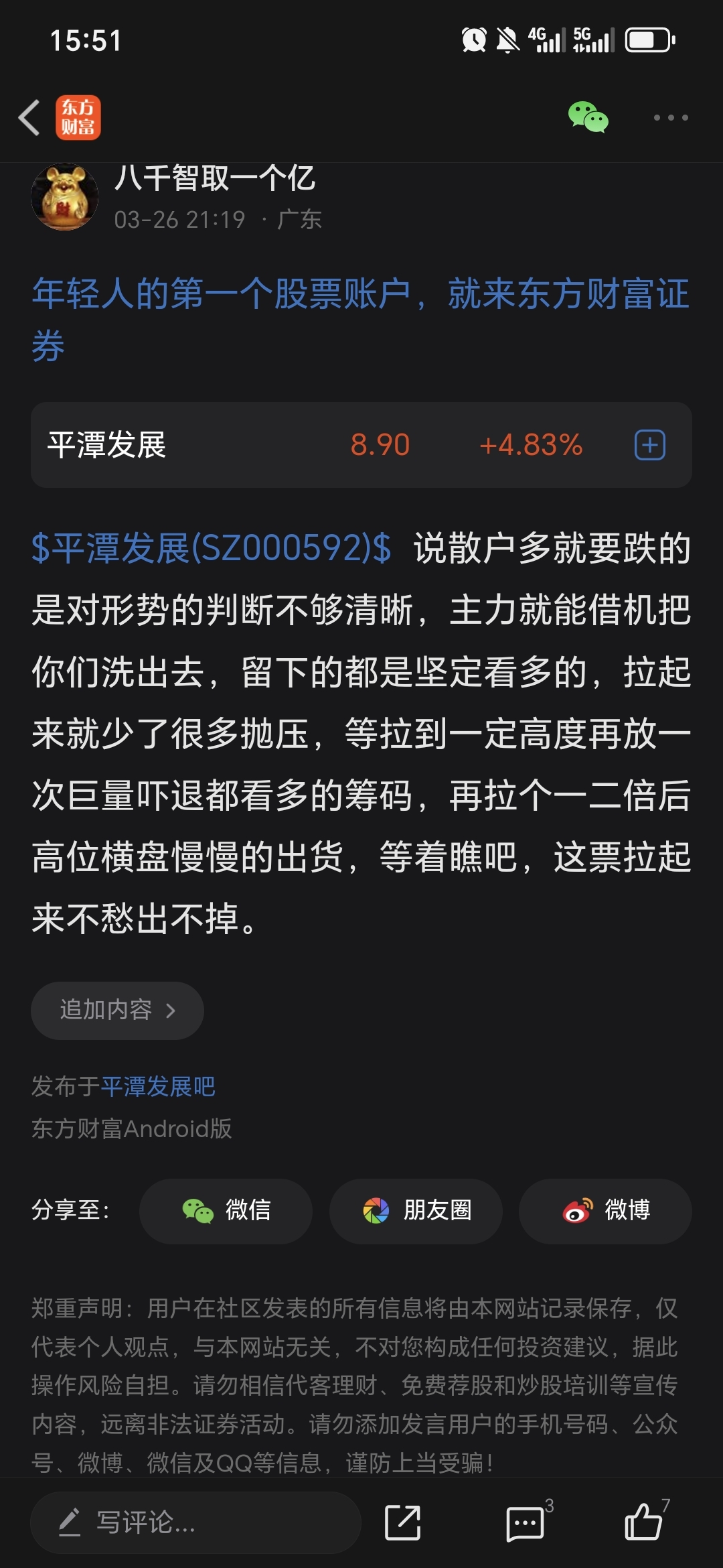 温馨提示: 1.根据《证券法》规定,禁止编造、传播虚假信息或者误导性信息,扰乱证券市场;2.用户在本社区发表的所有资料、言论等仅代表个人观点,与本网站立场无关,不对您构成任何投资建议。用户应基于自己的独立判断,自行决定证券投资并承担相应风险。《东方财富社区管理规定》