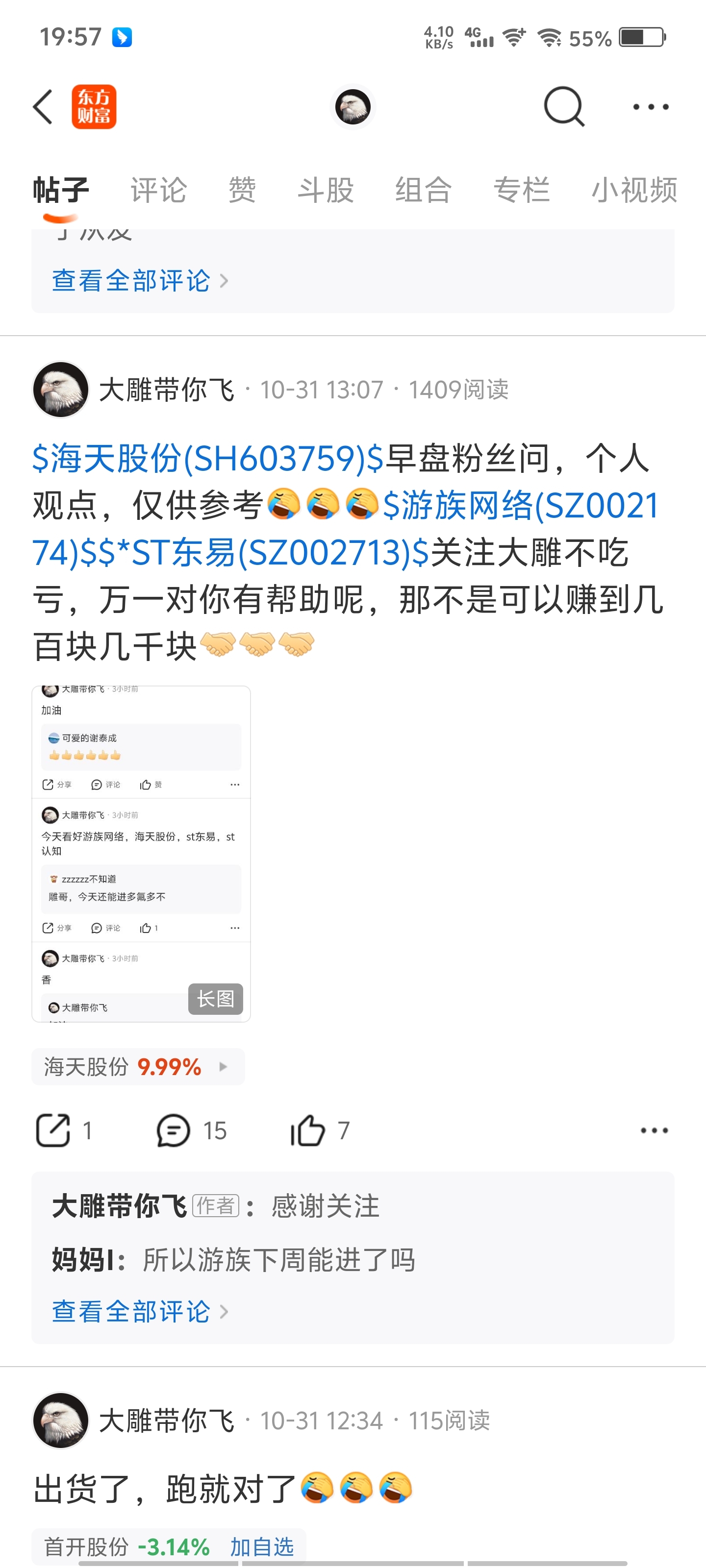$平潭发展(SZ000592)$ $吉视传媒(SH601929)$ $首开股份(SH600376)$ 我最近多次提示海天股份,st东易的机会,包括前期的振德医疗粉丝也是吃的满嘴流油!海天股份大涨5天,东易天天数板!股市没有眼泪,赚到钱才是真的!