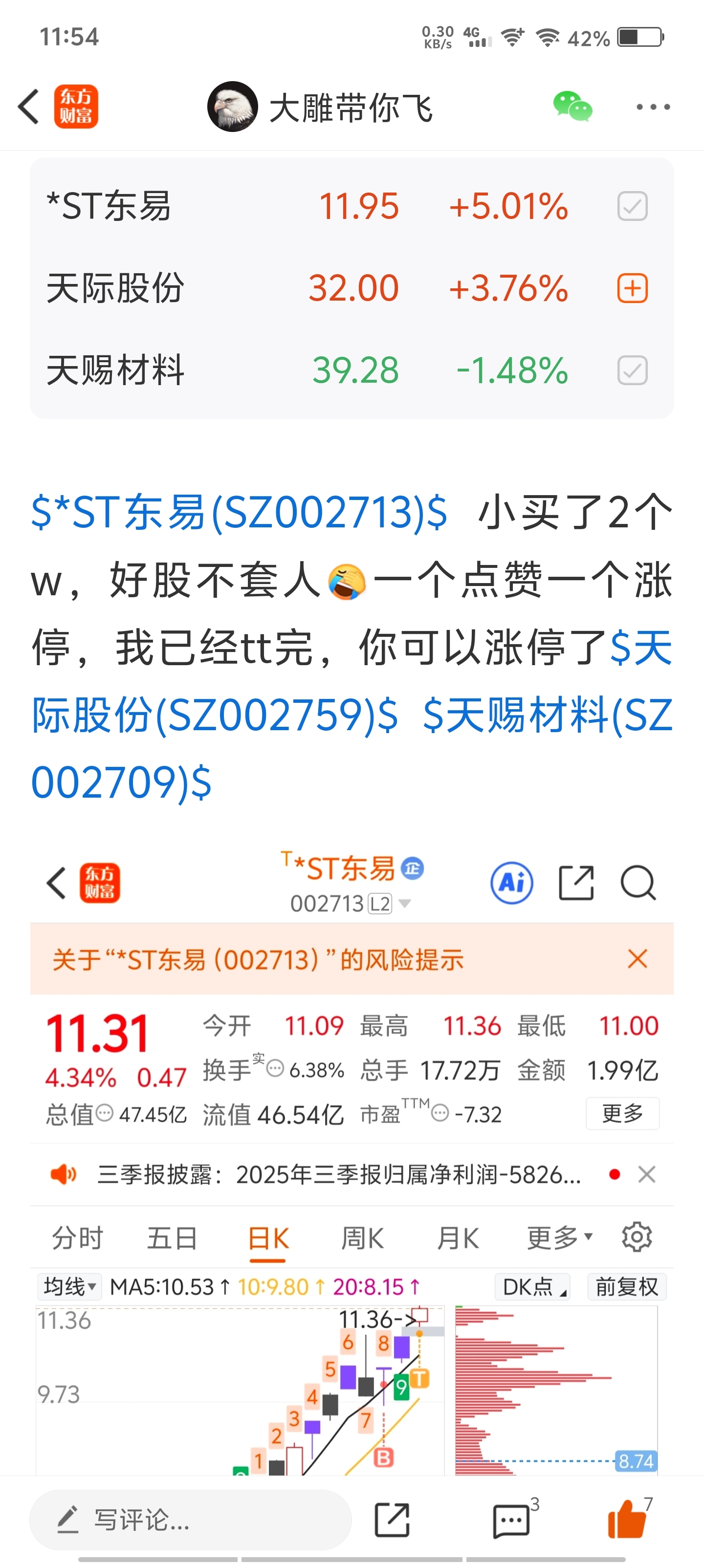 我最近多次提示海天股份,st东易的机会,包括前期的振德医疗粉丝也是吃的满嘴流油!
