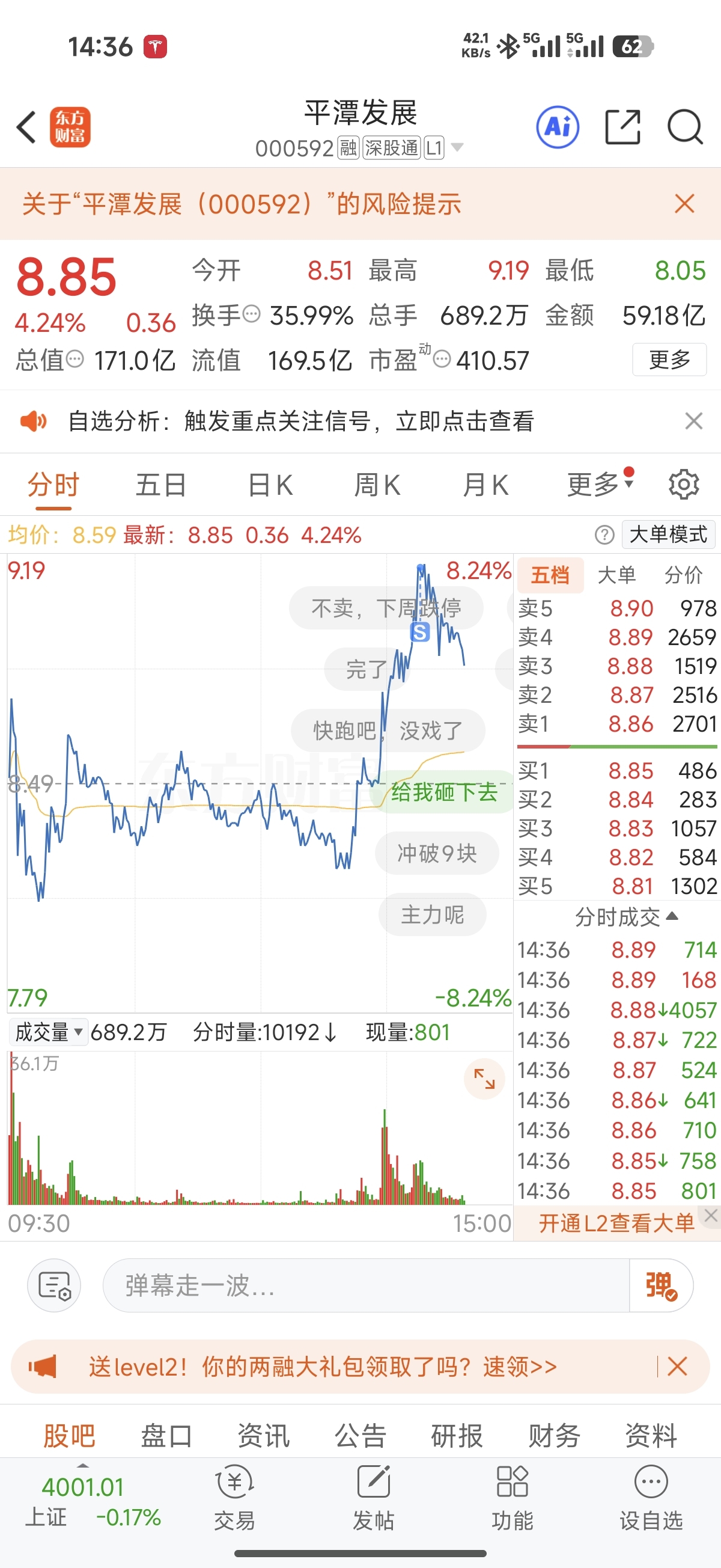 $平潭发展(SZ000592)$ 9.15清仓落袋为安