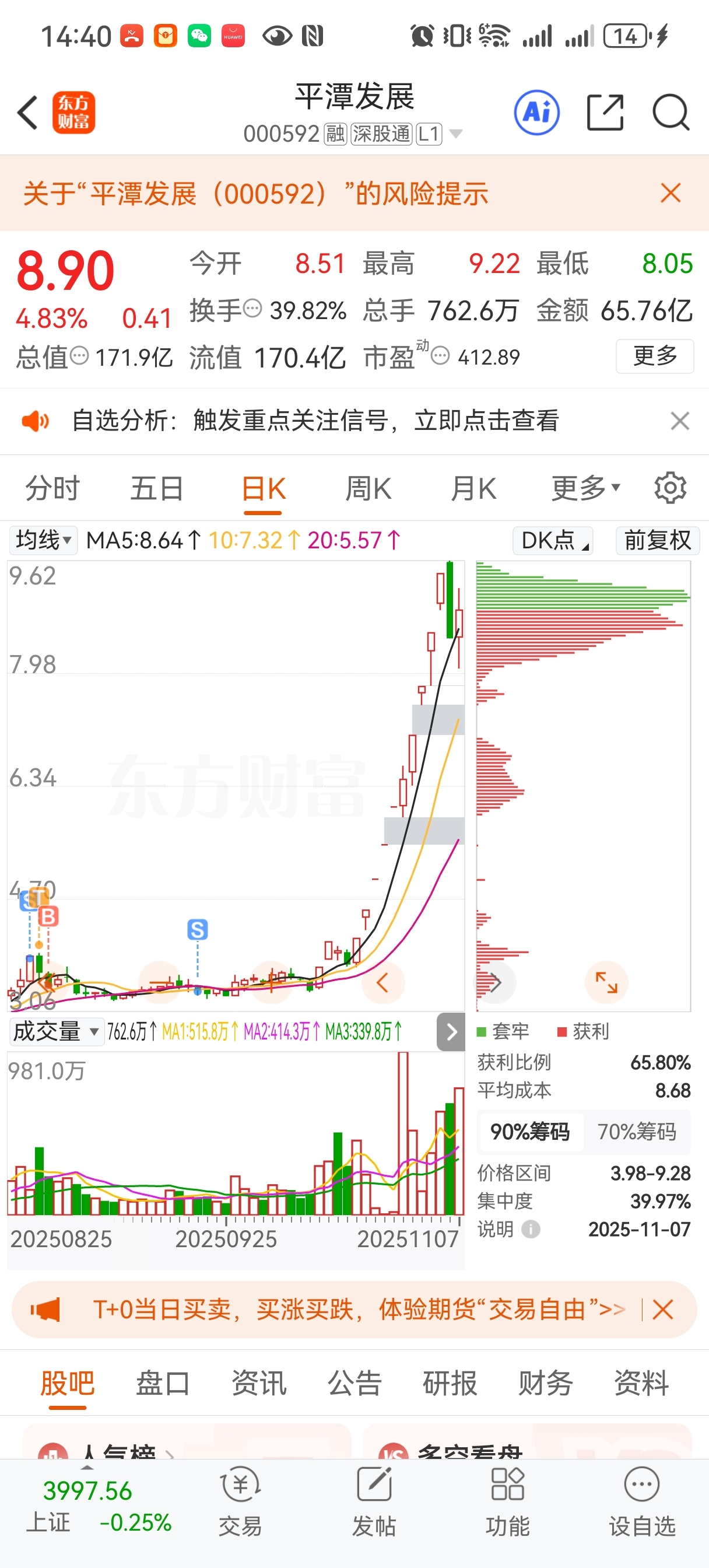 $平潭发展(SZ000592)$ #炒股日记# 跟大牛无缘