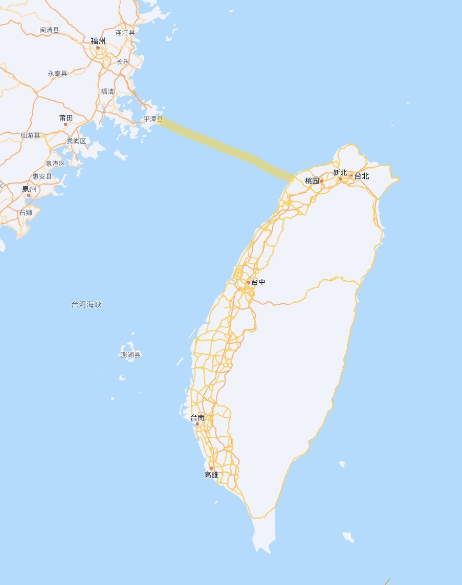 你们看这个图片,假如要修铁路或者跨海大桥,是不是从这里过去最近?哦,差点忘了,铁路好像马上要通车了