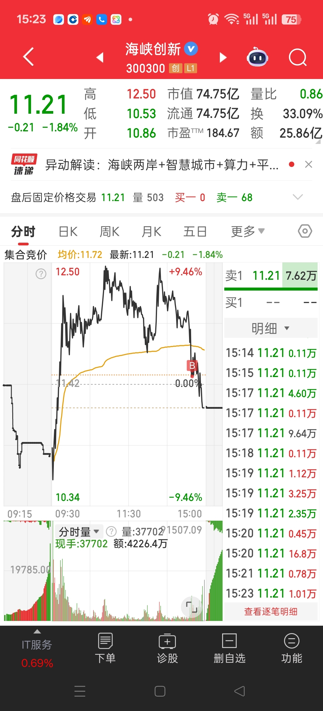 平潭发展和海峡创新是一个庄吧,分时图走势完全一样,以为尾盘可以捡个便宜筹码,结果