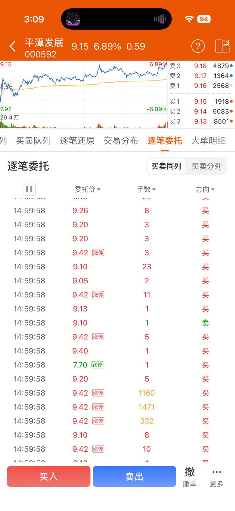 尾盘竞价一堆大单挂涨停价抢筹,跟上星期的海马一样,明天应该高开加速反包了。