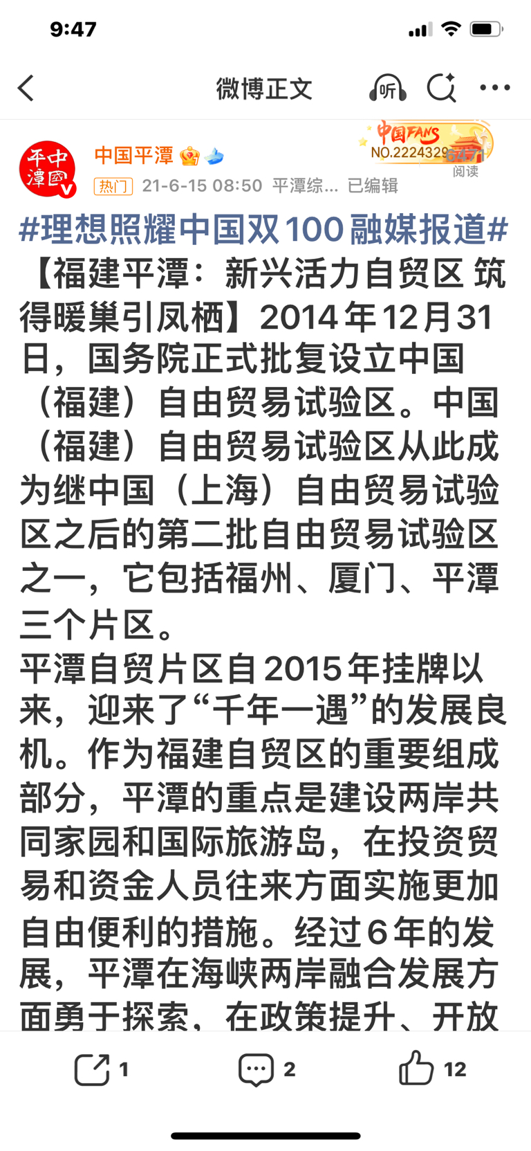 $平潭发展(SZ000592)$ 平潭的机遇,不是百年机遇,是千年机遇!平潭岛最显著位置就是这块语录牌!随着155规划出台,祖国统一的推进与推动已经波澜壮阔!