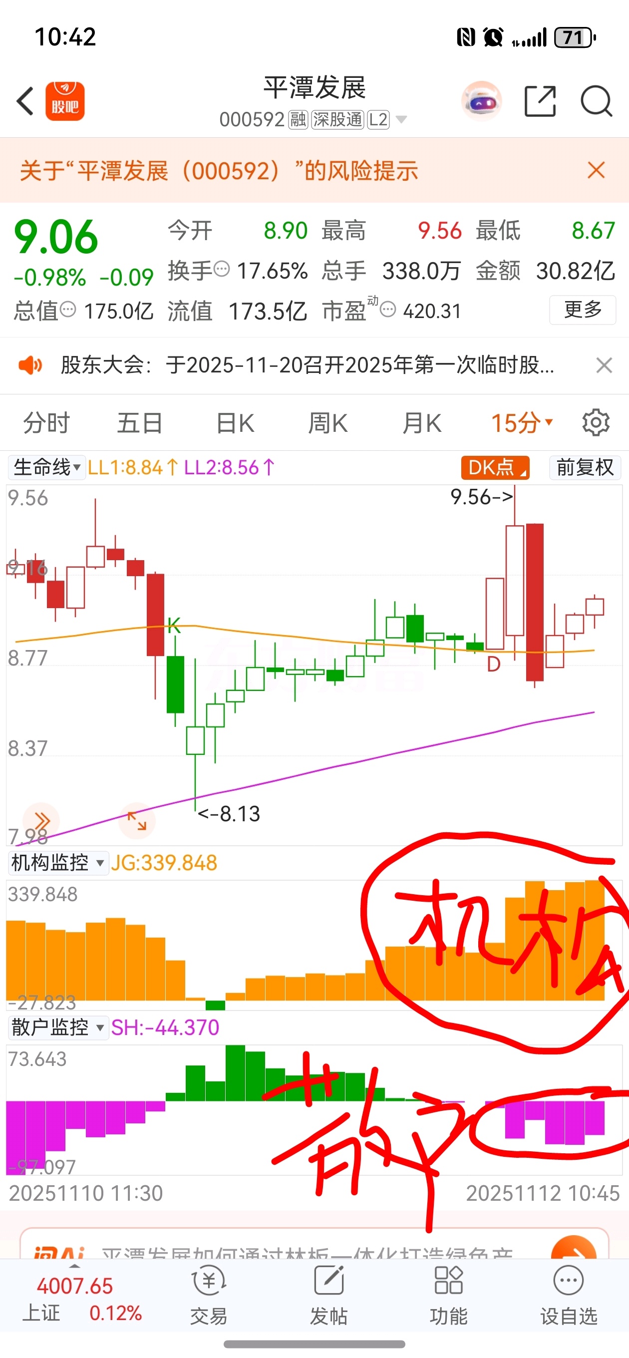 $平潭发展(SZ000592)$ 机构在吃货,散户在卖。