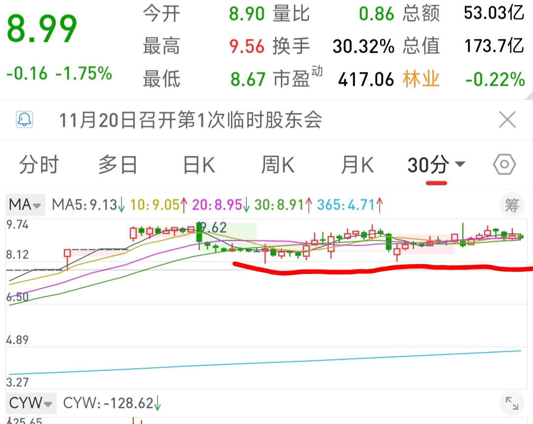 收盘符合预期,仍然在调整箱体内,没有跌破这里看到有人说,今天向上高点越来越低但是