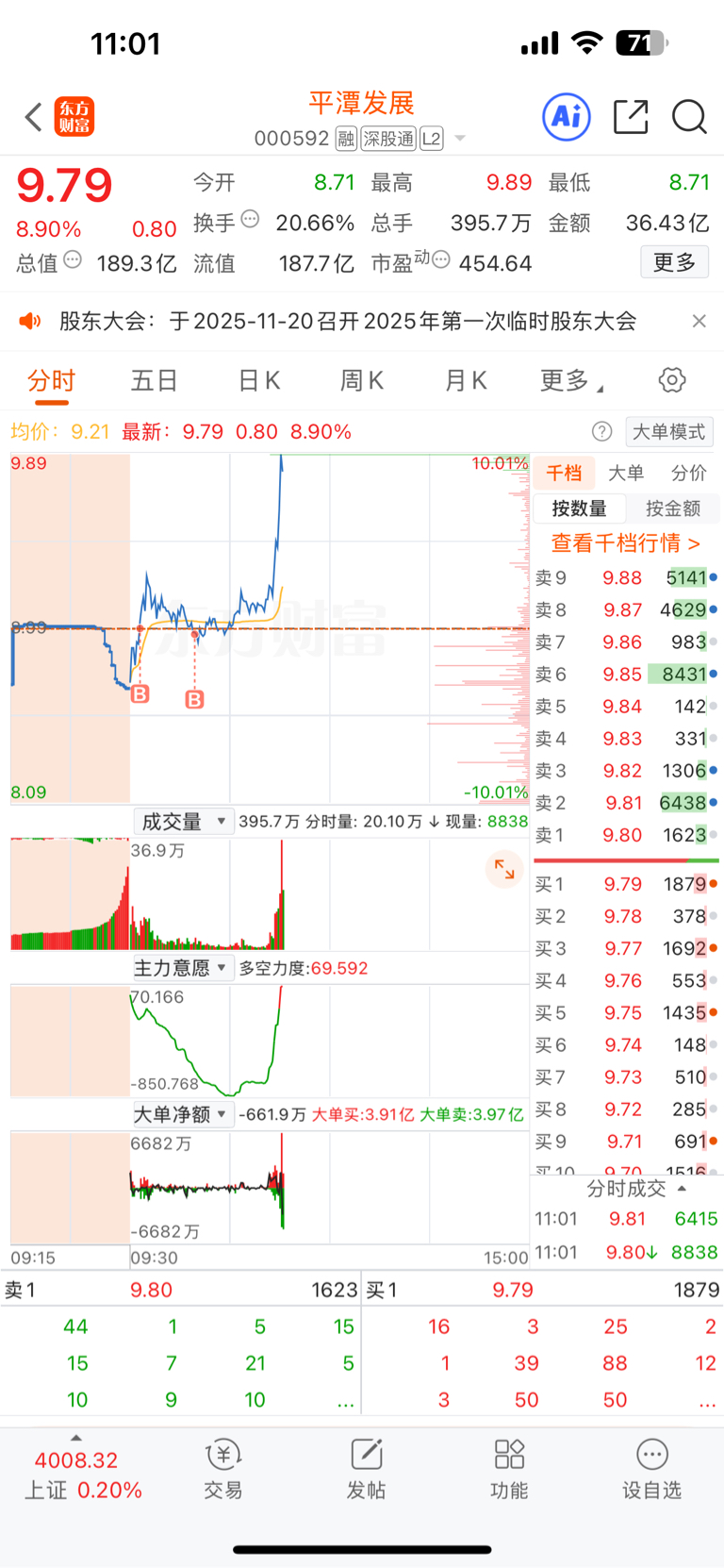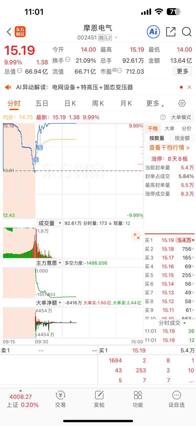 出摩恩电气,买平潭发展,最近在保存利润,怂一点