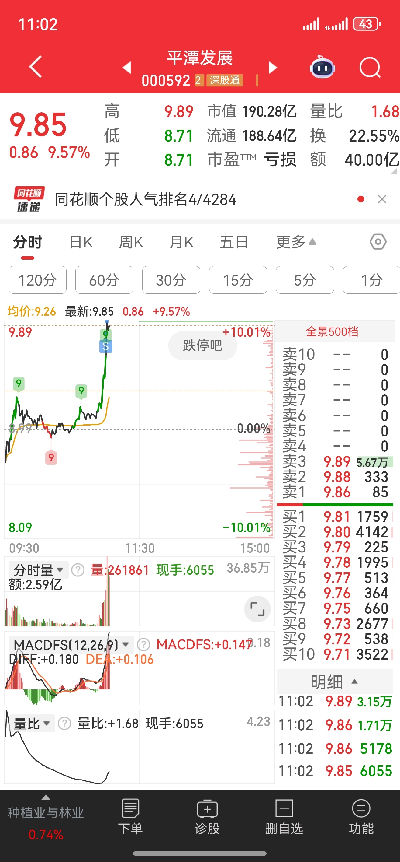 $平潭发展(SZ000592)$ 那个说我的韭菜割肉没。说我没持仓,我卖在最高点了