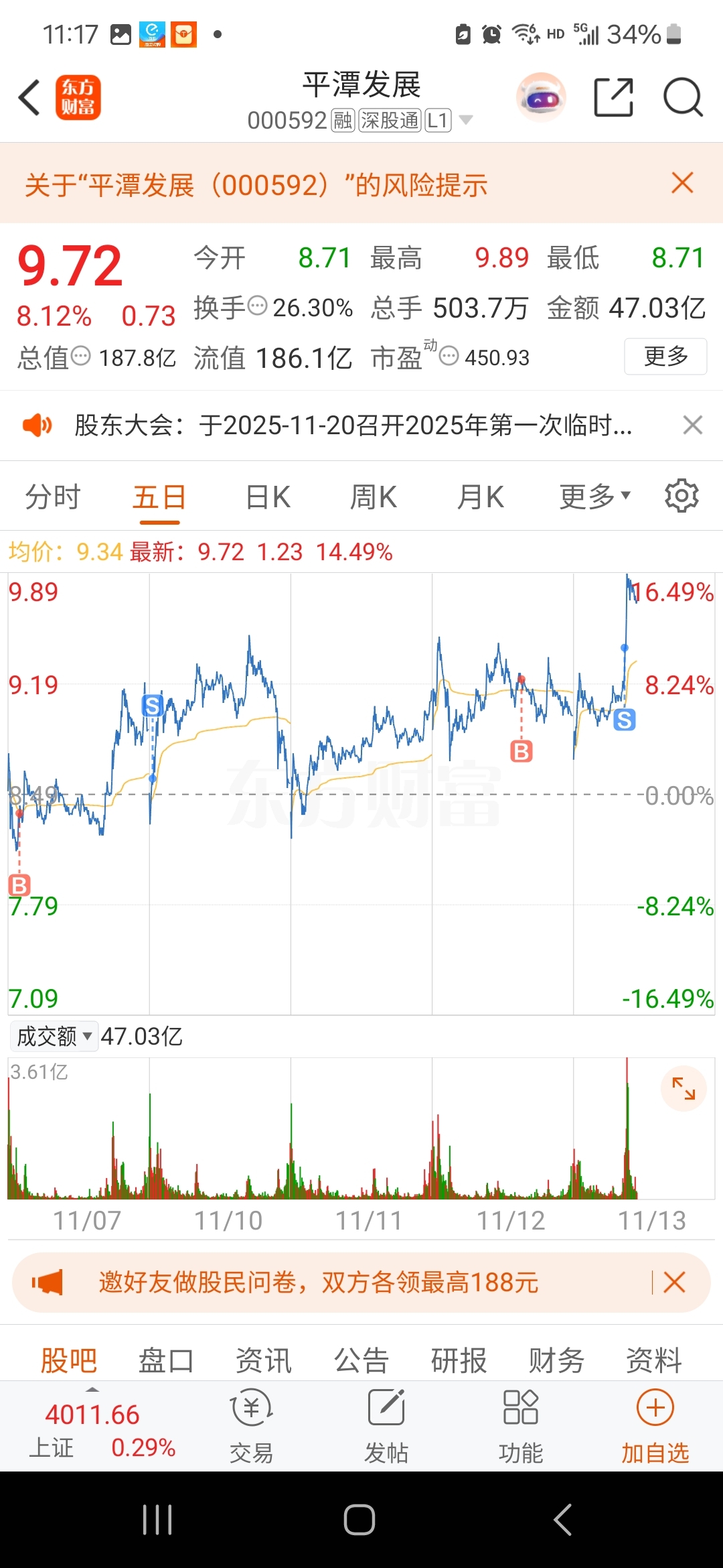$平潭发展(SZ000592)$ 本来就是抱着是错的心态去买的,不亏就好