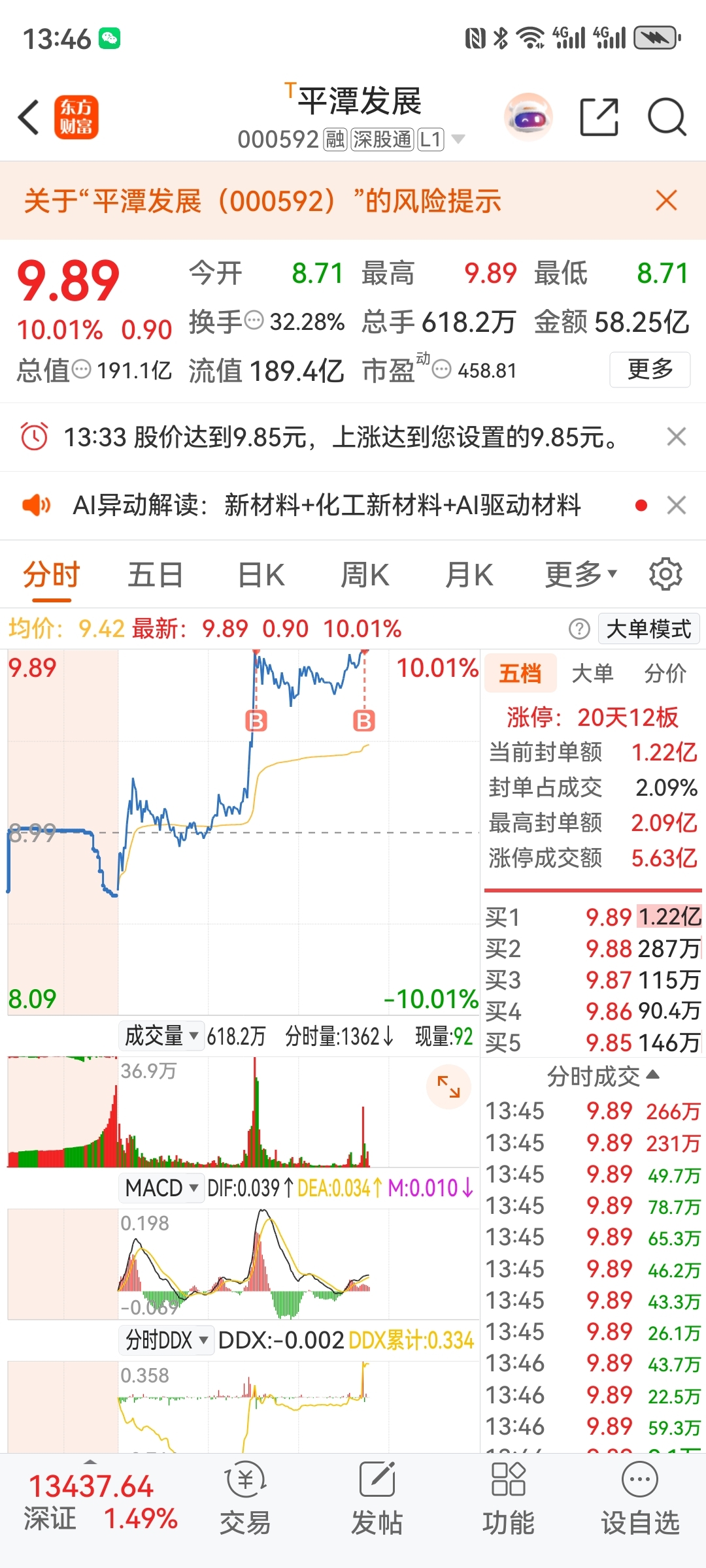 $平潭发展(SZ000592)$ 打板好还是低吸好,我个人喜欢打板进场,虽然成本很高,第二天低开还会亏钱,但是打板的好处就是确定性高,不需要纠结几个点进去,我的成交价就是涨停价,而且,打板一旦封住,第二天大概率是要赚钱的,封不住第二天就比谁跑得快了。看K线,平潭发现这几天都没有怎么负反馈,而是高位良性震荡,蓄势待发,看好二波。