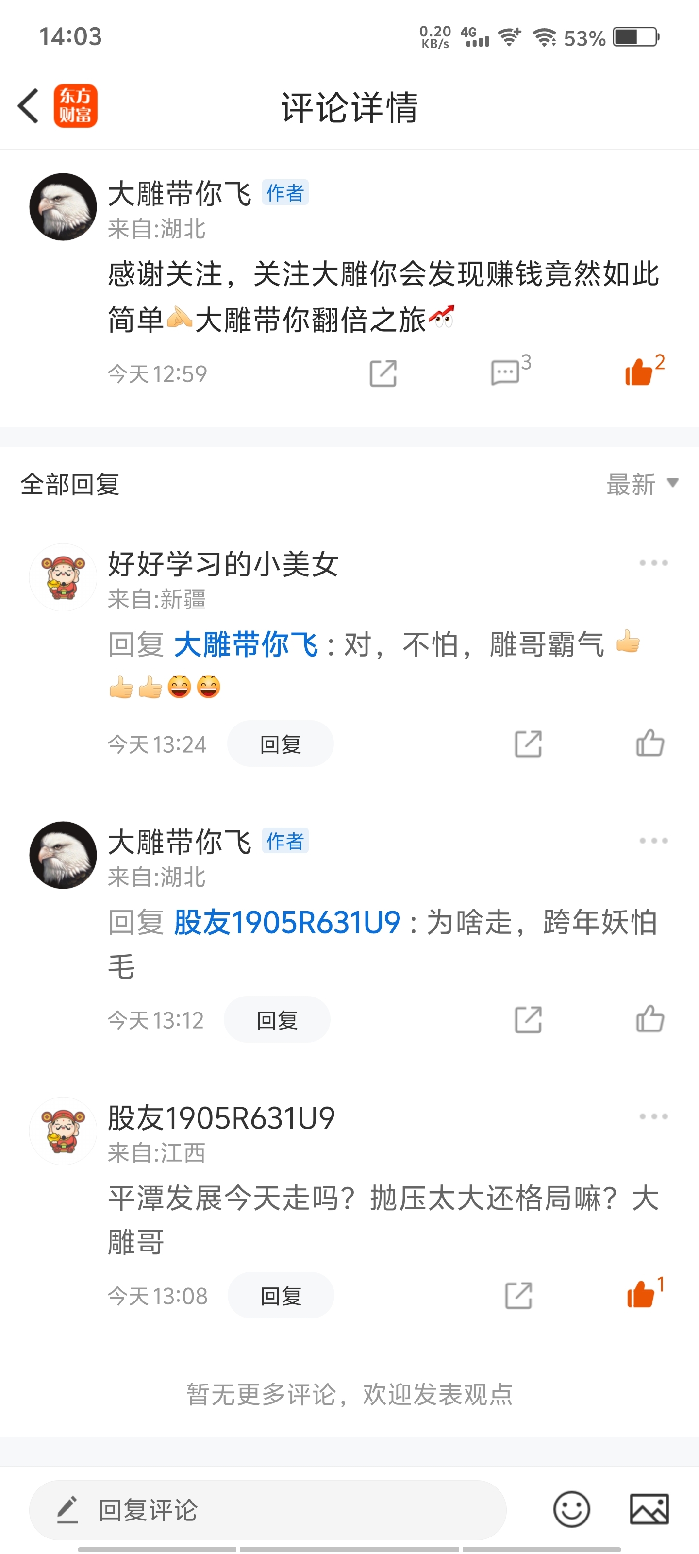 $平潭发展(SZ000592)$ $天际股份(SZ002759)$ $福龙马(SH603686)$ 要么就别玩短线,短线就要玩龙头,又怕高又怕亏,那就老实玩玩趋势票!关注大雕不吃亏,因为大雕带你飞
