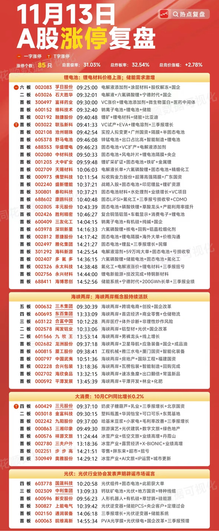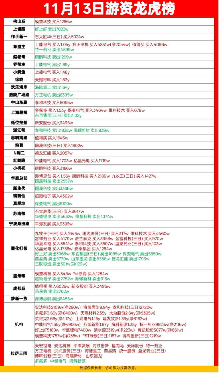 11月13日各大板块涨停个股&游资龙虎榜复盘今天我还在合富躺板免责声明:本文基于