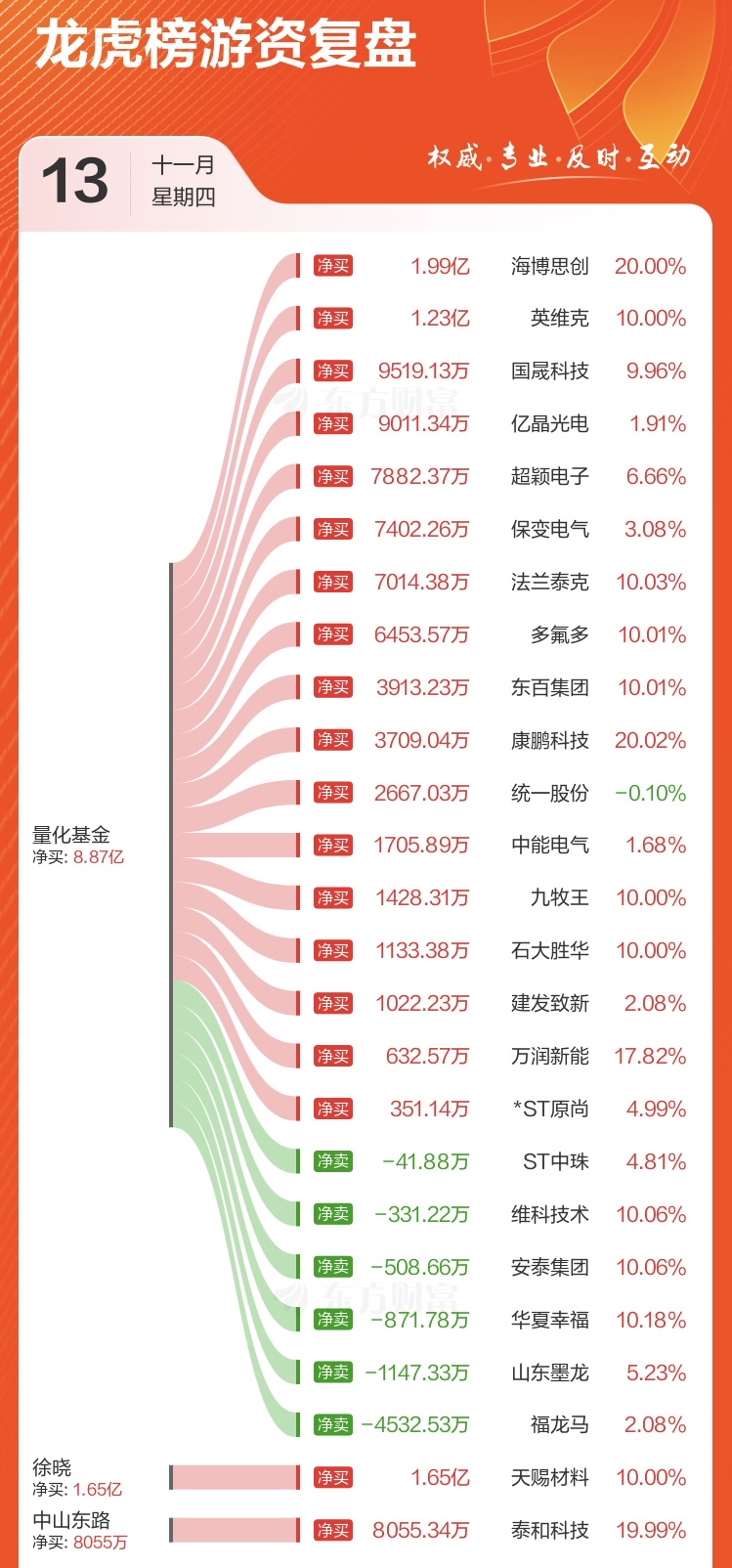 11月13日 各大板块涨停个股&游资龙虎榜复盘