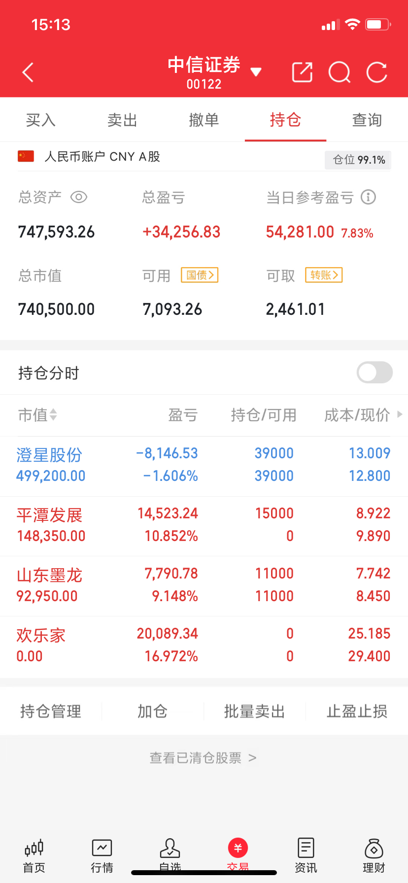 11.13持仓总结:平潭发展今日水下低吸建仓,午后成功封板,期待明日延续强势表现