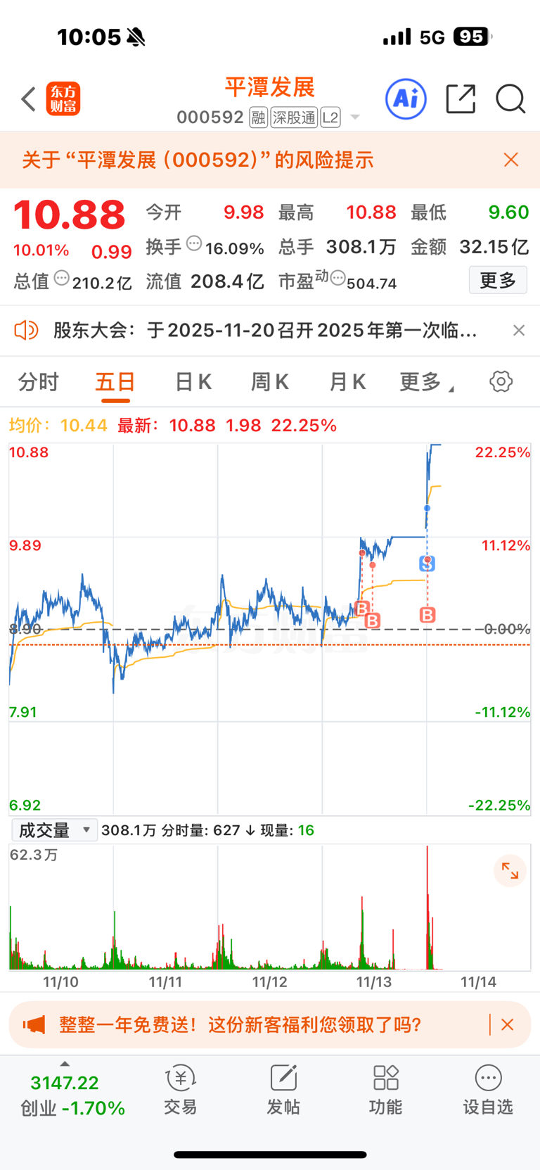 $平潭发展(SZ000592)$ 4+卖了,-3又接回来,这样稳稳的吃肉