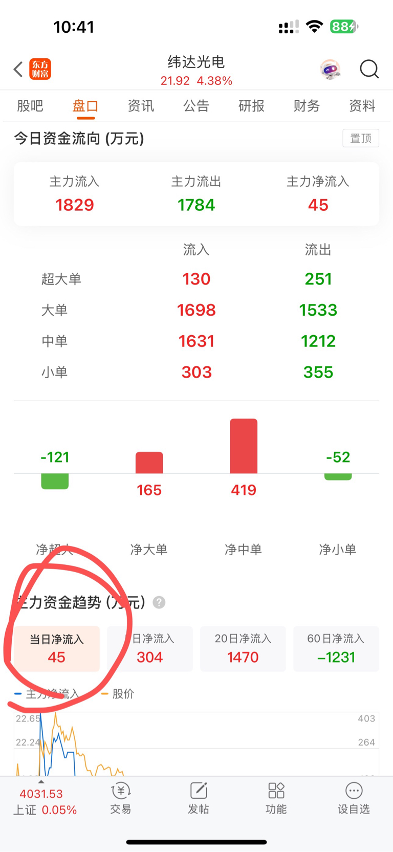 纬达光电也太牛逼了吧,净流入45万居然能拉起来这么多