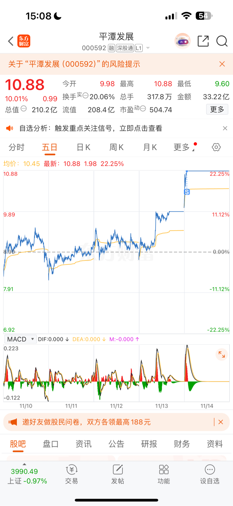 $平潭发展(SZ000592)$ 拿了这么久,今天不知道发什么疯没忍住