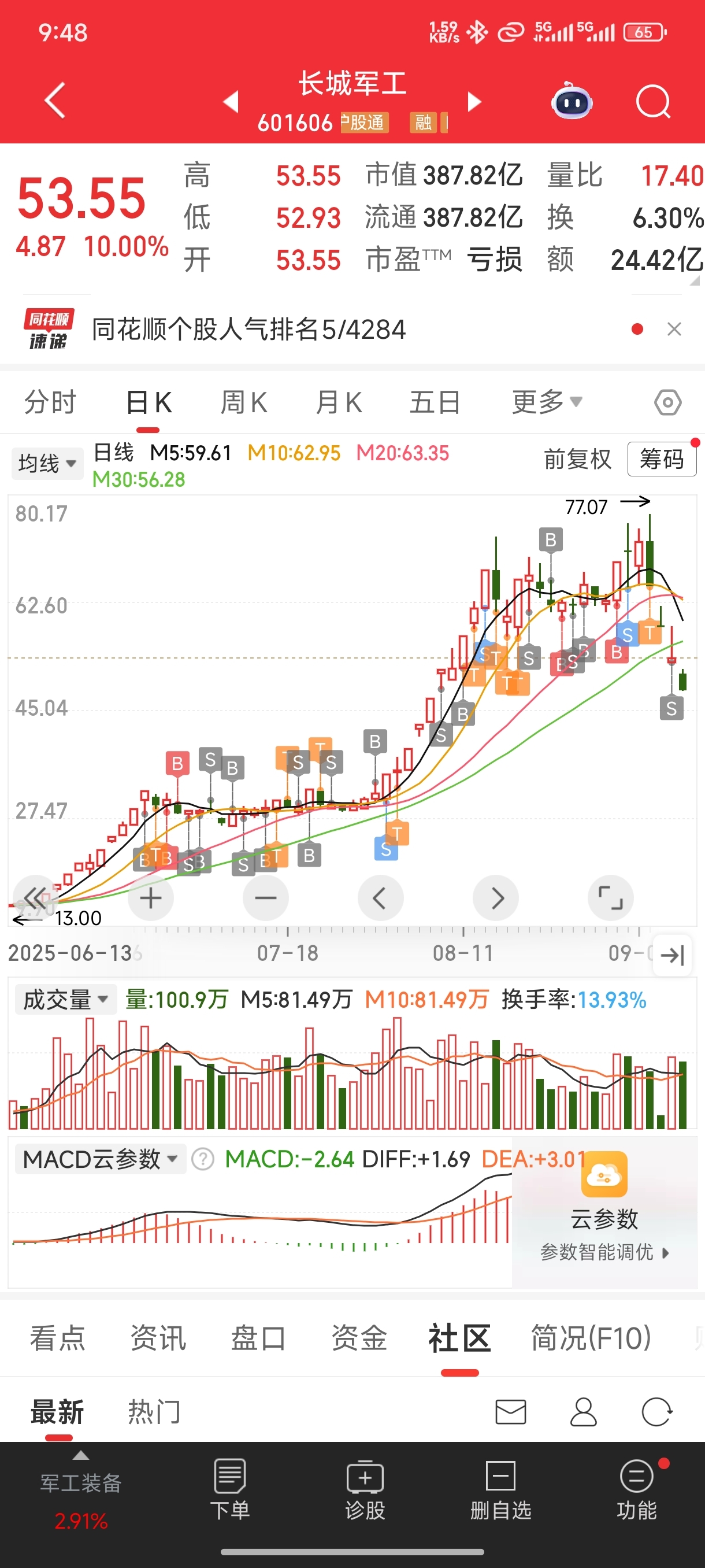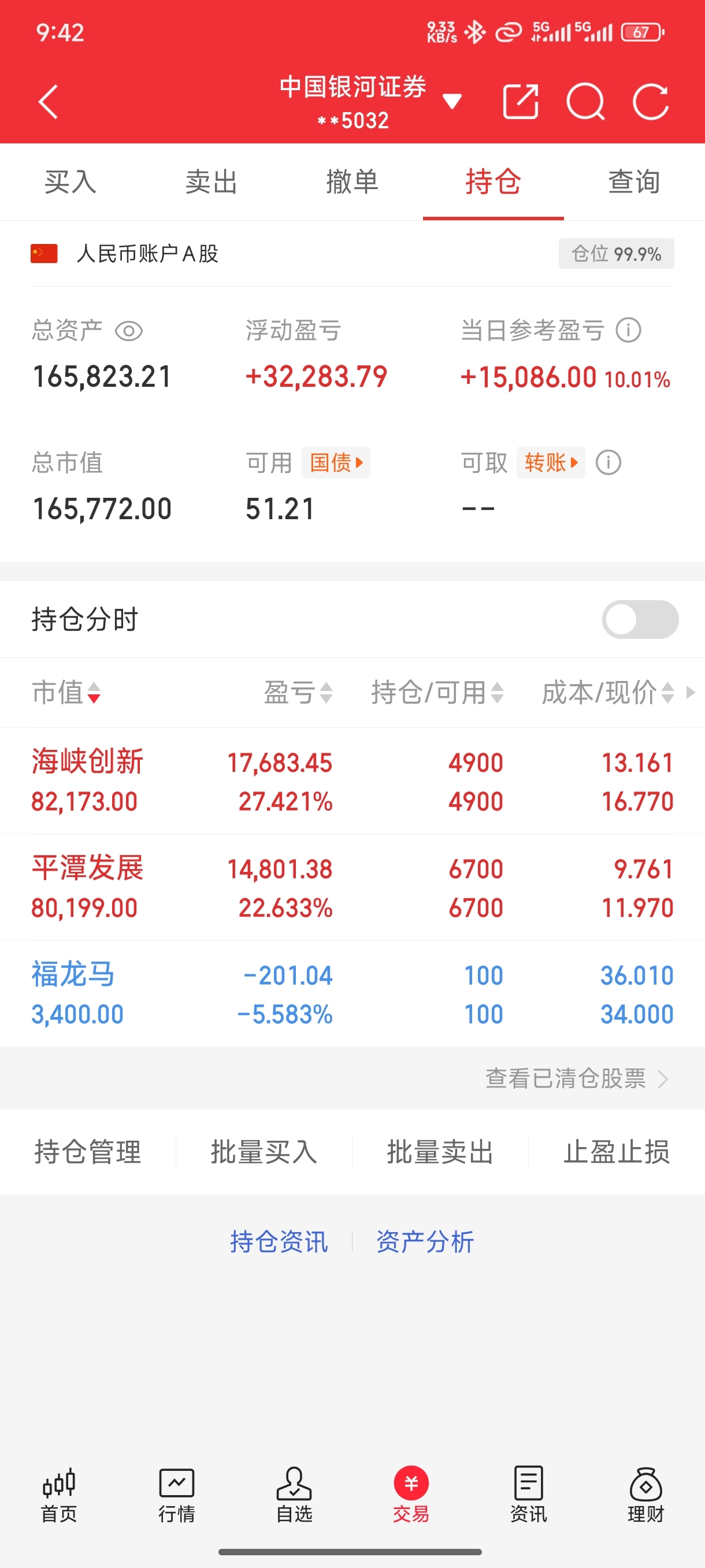 $平潭发展(SZ000592)$ $海峡创新(300300)$ 买入强势股就是我的信仰,相信龙头 $长城军工(601606)$ $平潭发展(000592)$ 这次比9.3阅兵少不了高度,放平心态拿稳了