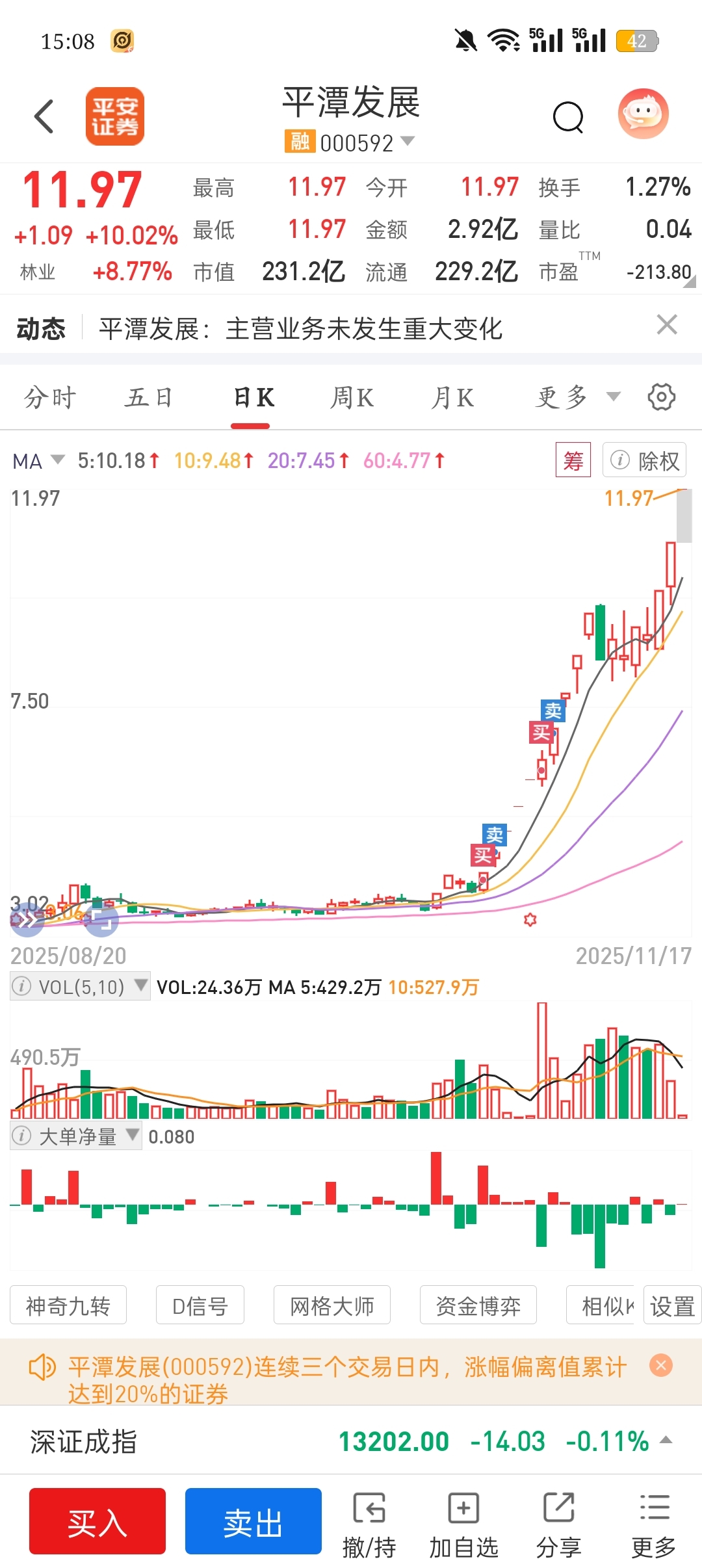 $平潭发展(SZ000592)$ 活该我赚不了大钱