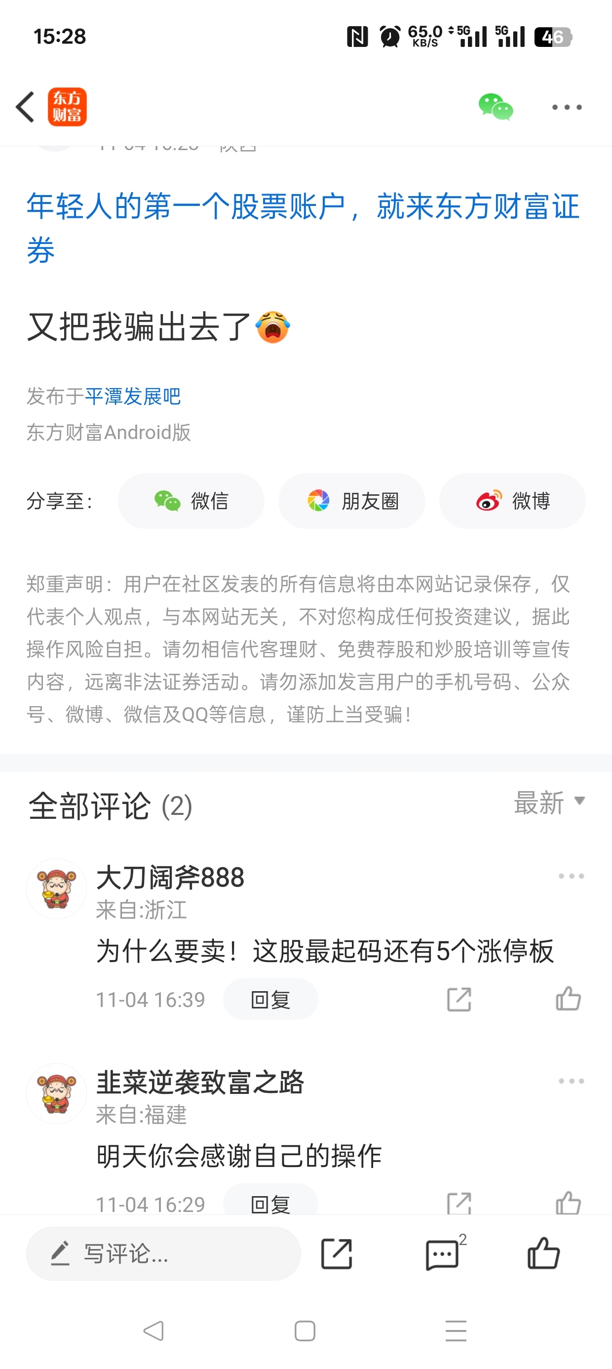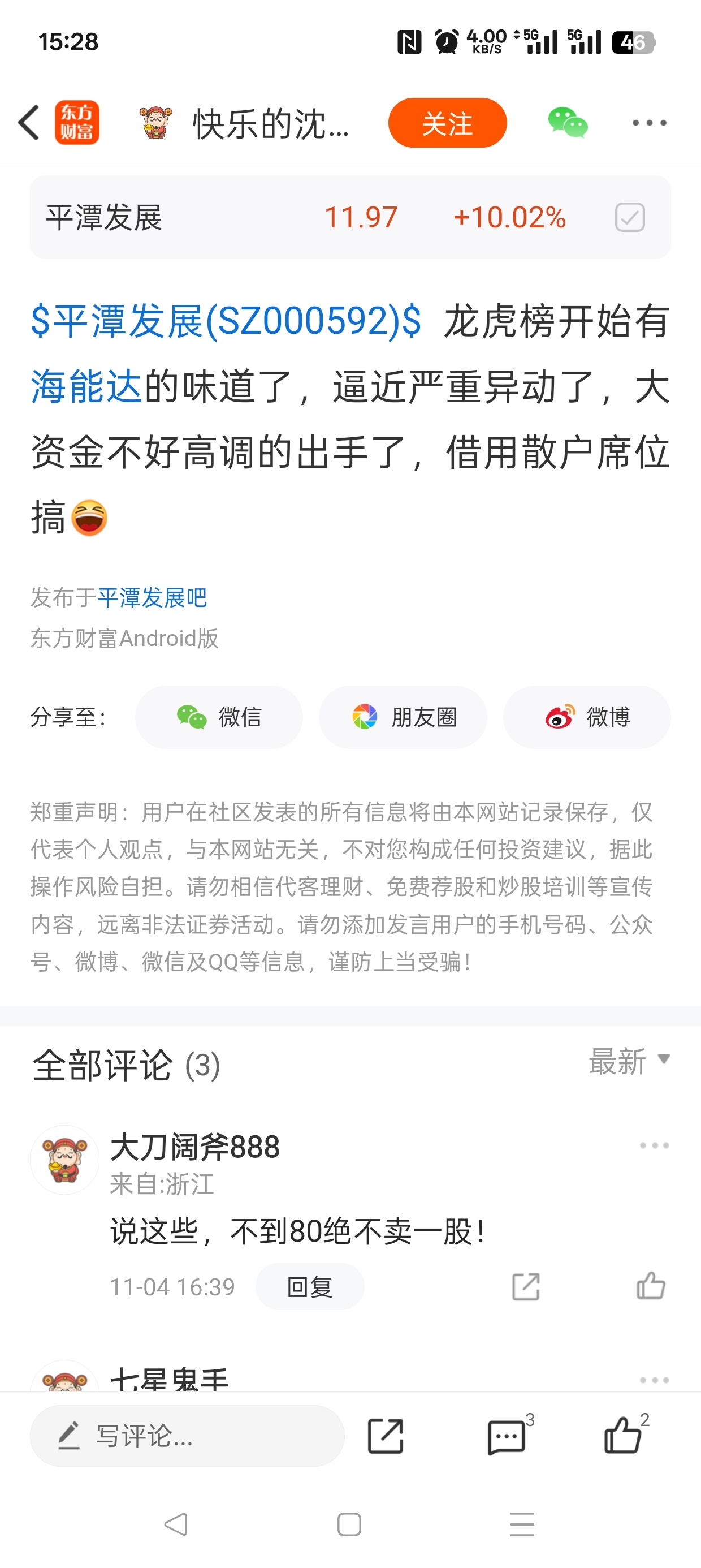 温馨提示: 1.根据《证券法》规定,禁止编造、传播虚假信息或者误导性信息,扰乱证券市场;2.用户在本社区发表的所有资料、言论等仅代表个人观点,与本网站立场无关,不对您构成任何投资建议。用户应基于自己的独立判断,自行决定证券投资并承担相应风险。《东方财富社区管理规定》
