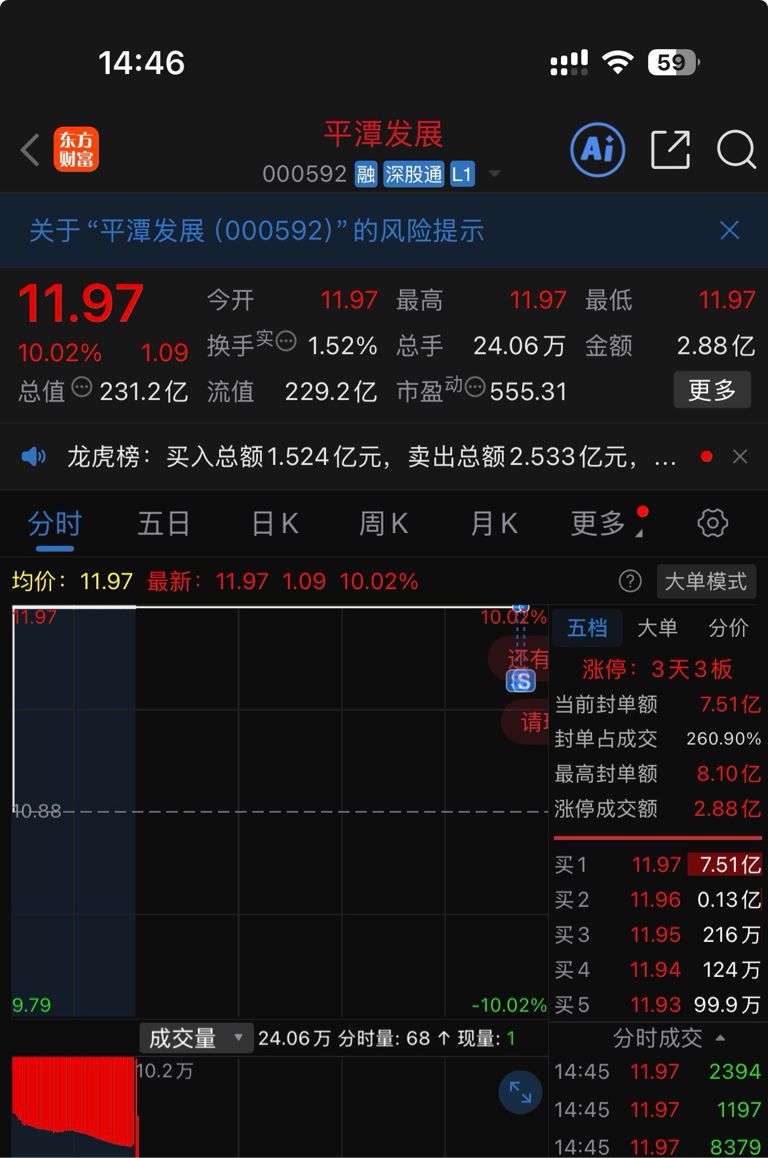 $平潭发展(SZ000592)$ 我跑了,你们继续嗨,祝发财