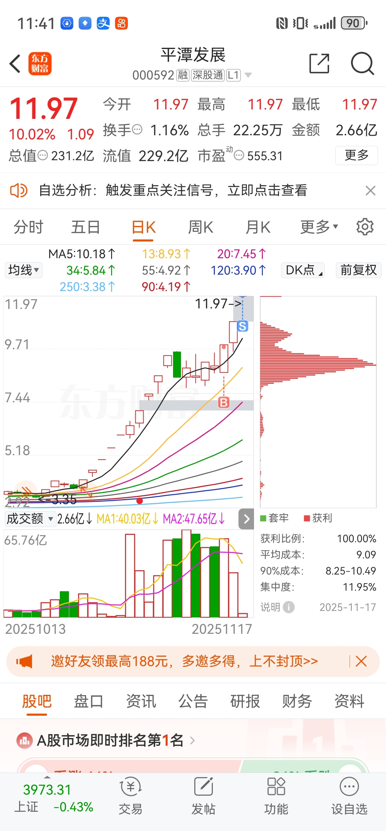 $平潭发展(SZ000592)$ 明天开盘涨停再把剩下的出掉,不贪心。
