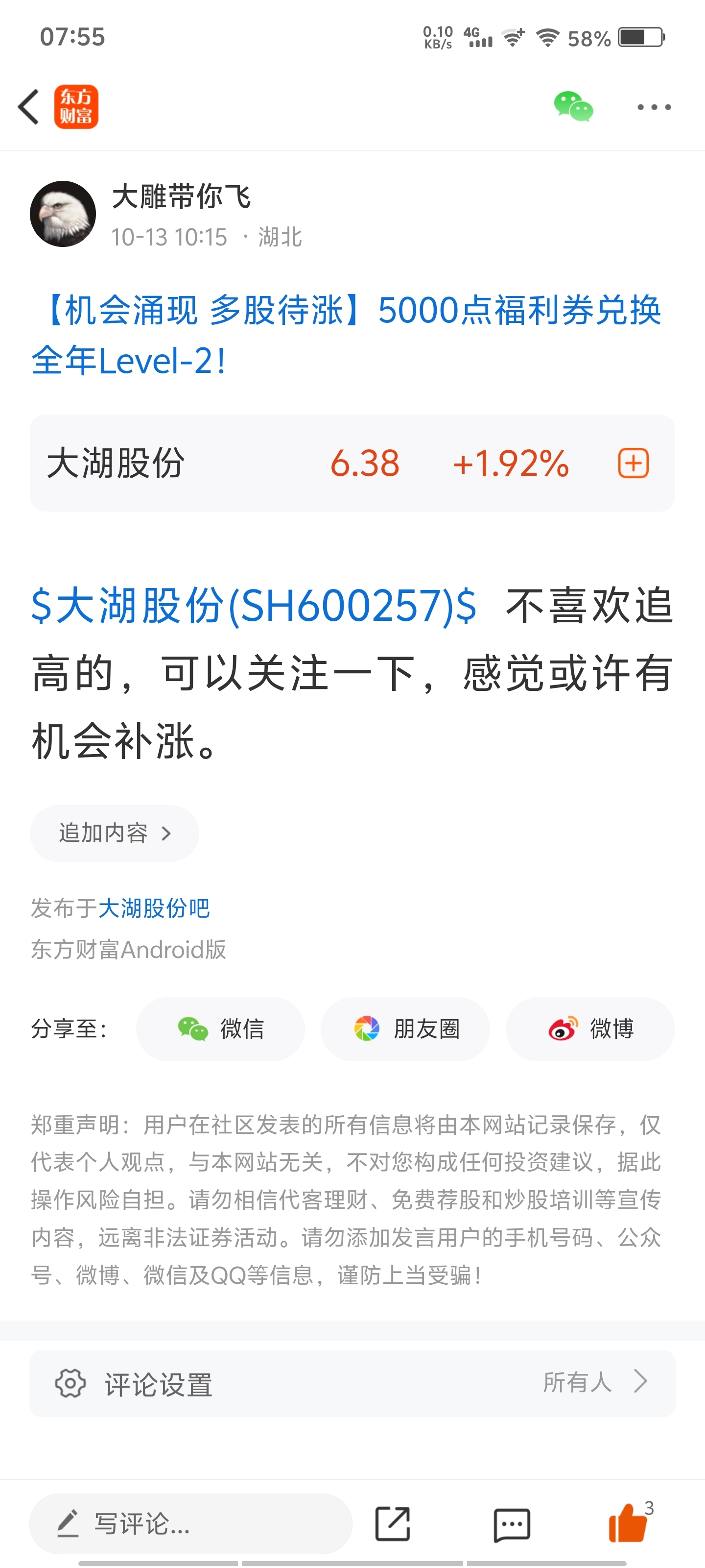温馨提示: 1.根据《证券法》规定,禁止编造、传播虚假信息或者误导性信息,扰乱证券市场;2.用户在本社区发表的所有资料、言论等仅代表个人观点,与本网站立场无关,不对您构成任何投资建议。用户应基于自己的独立判断,自行决定证券投资并承担相应风险。《东方财富社区管理规定》