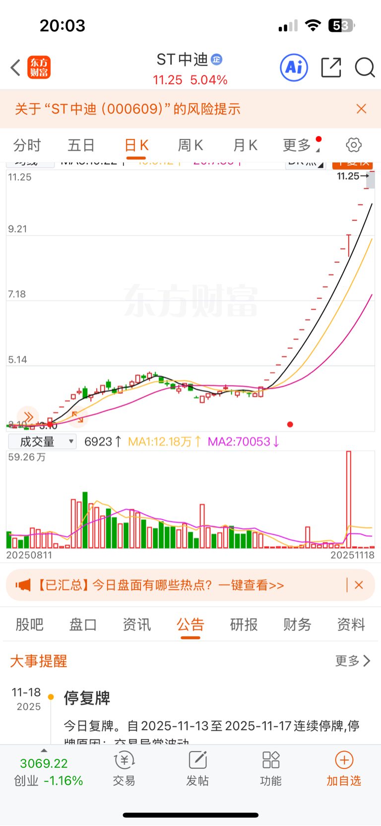中迪也异常波动,复牌还是涨停。