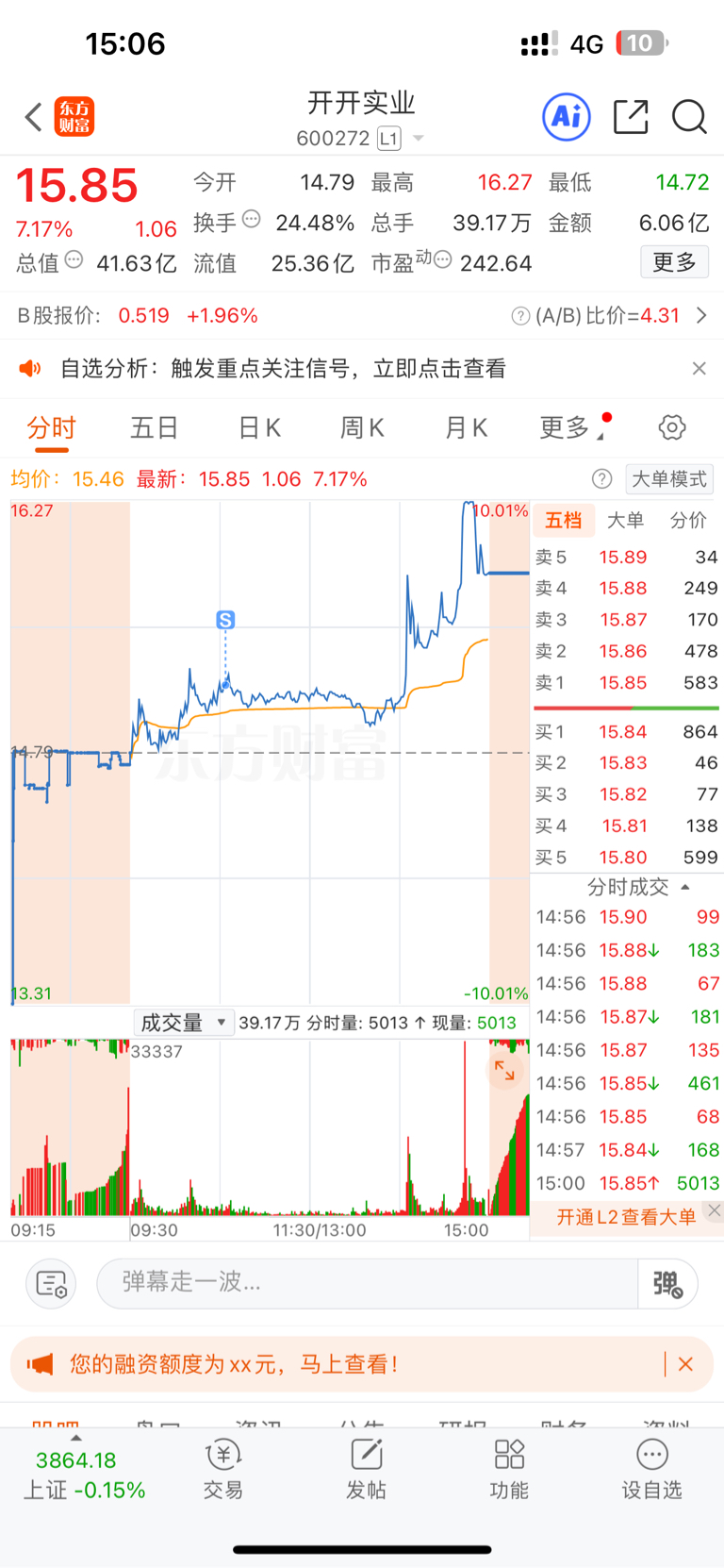 卖飞开开没招了,尾盘抄底平潭