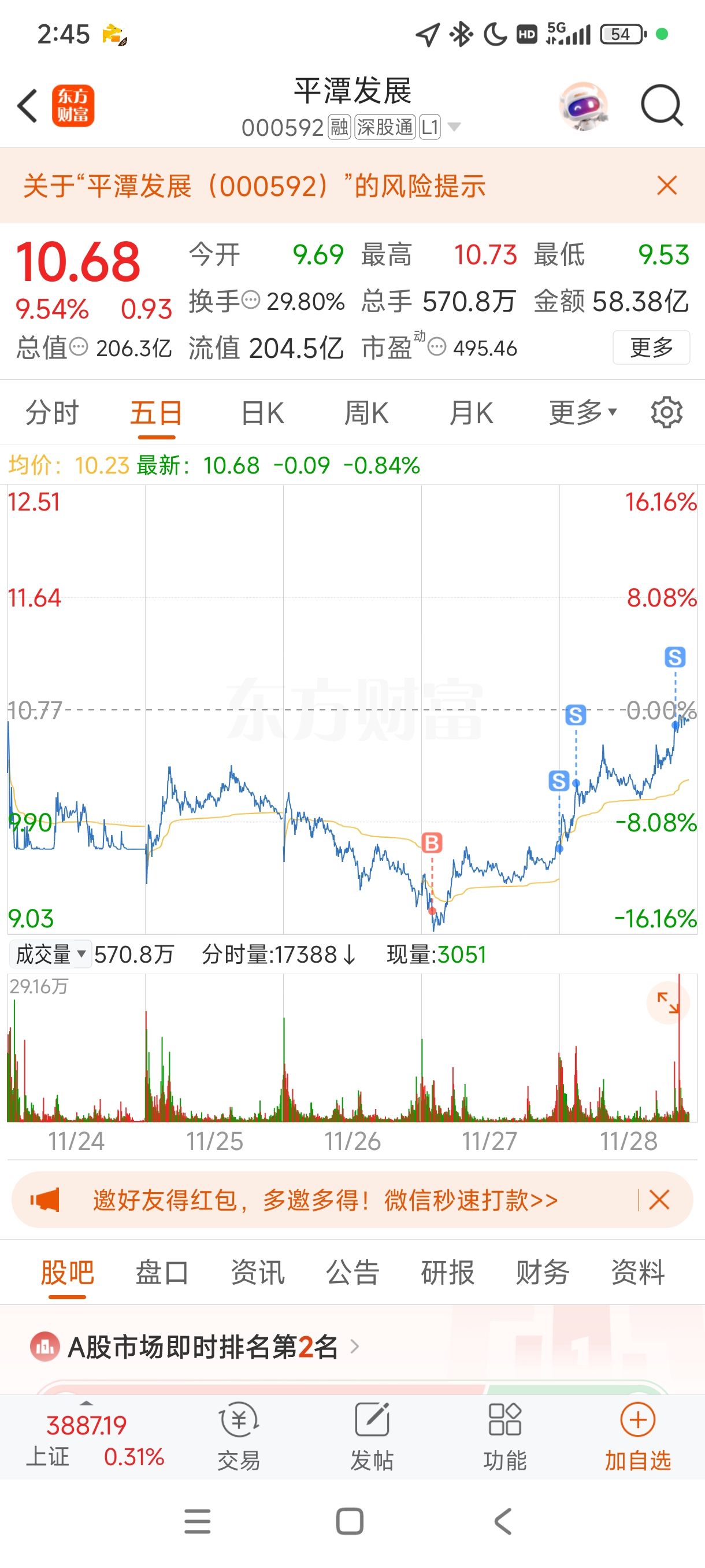 $平潭发展(SZ000592)$ 真是服了,尾盘没实力就不要拉涨停,搞得放了100多万手的量,又封不住板,下周一的承压,谁接啊?