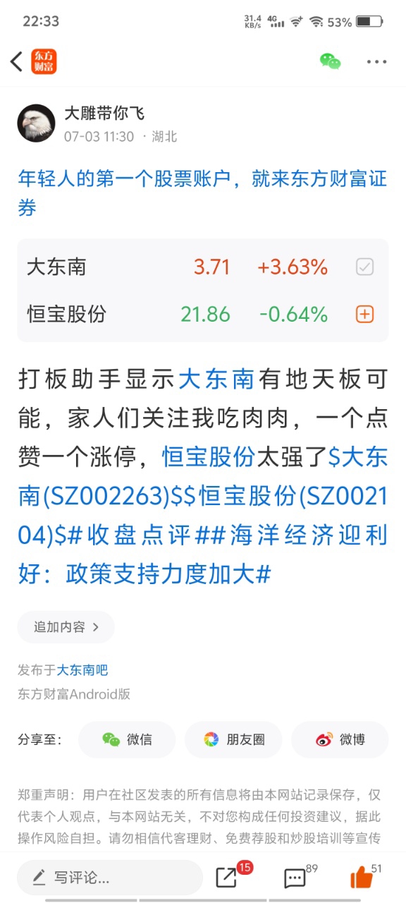 温馨提示: 1.根据《证券法》规定,禁止编造、传播虚假信息或者误导性信息,扰乱证券市场;2.用户在本社区发表的所有资料、言论等仅代表个人观点,与本网站立场无关,不对您构成任何投资建议。用户应基于自己的独立判断,自行决定证券投资并承担相应风险。《东方财富社区管理规定》