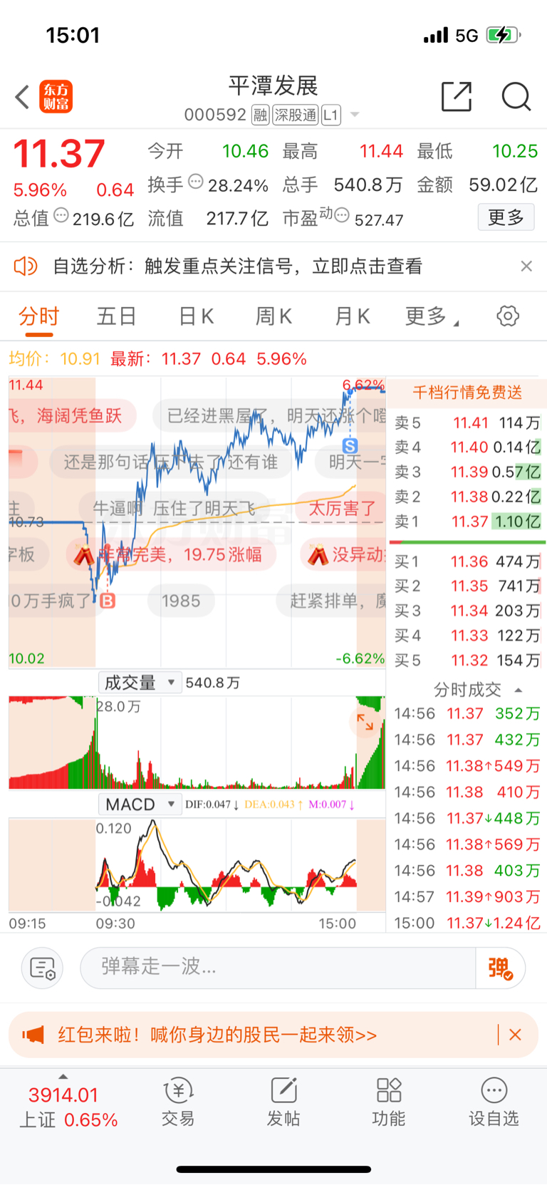 $平潭发展(SZ000592)$ 做了一波T明天继续