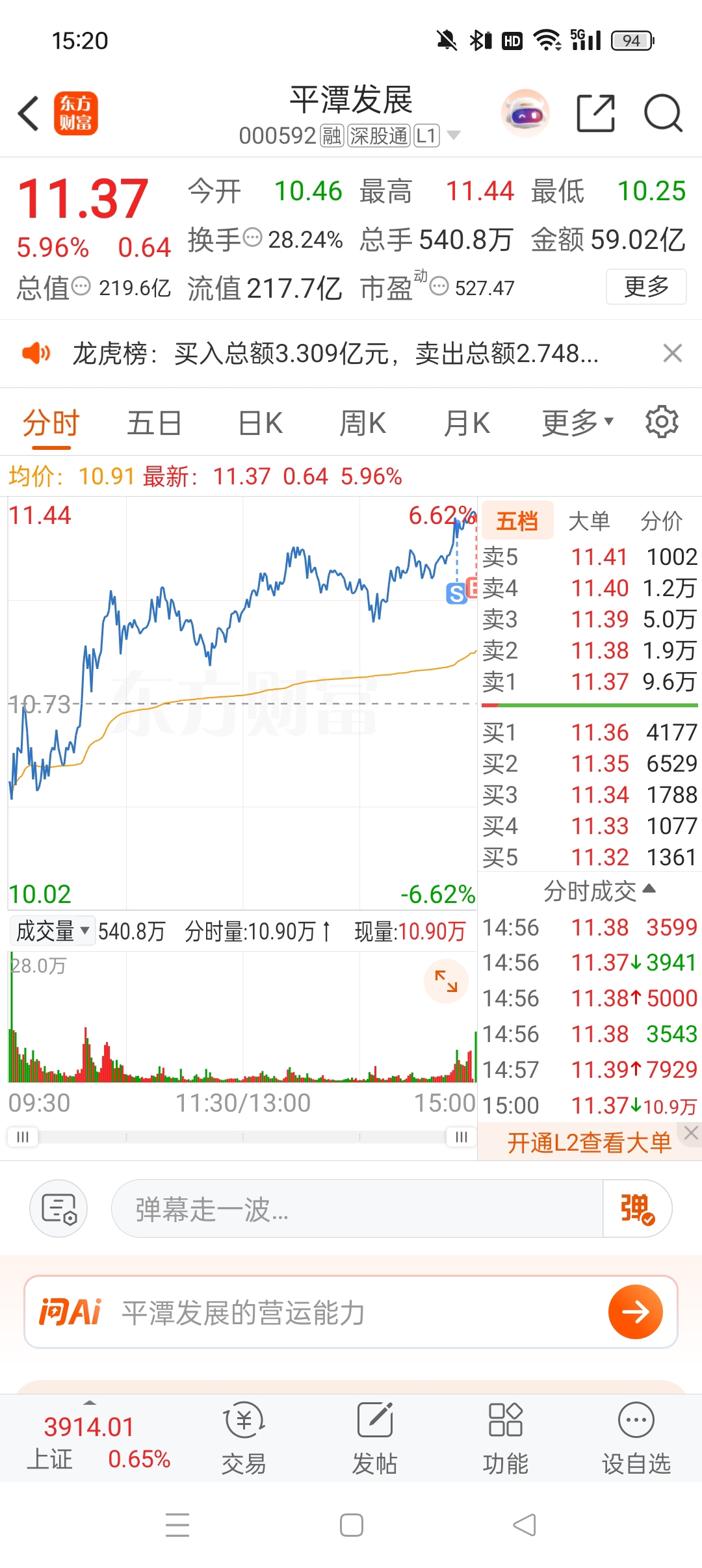 $平潭发展(SZ000592)$ 格局一天,尾盘以为有坏人想送大帝进去,成本提高两分钱