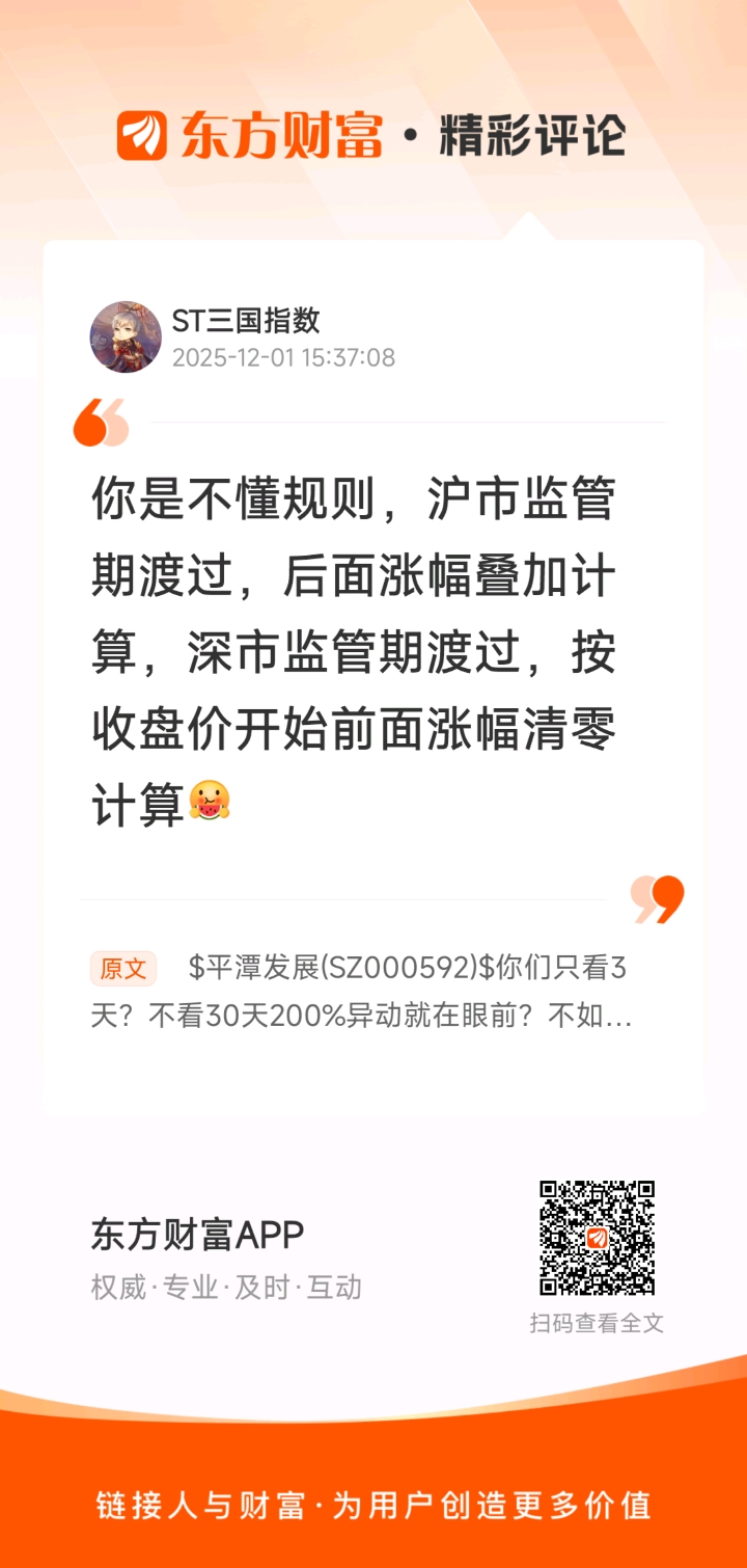 //@ST三国指数 :你是不懂规则,沪市监管期渡过,后面涨幅叠加计算,深市监管期渡过,按收盘价开始前面涨幅清零计算