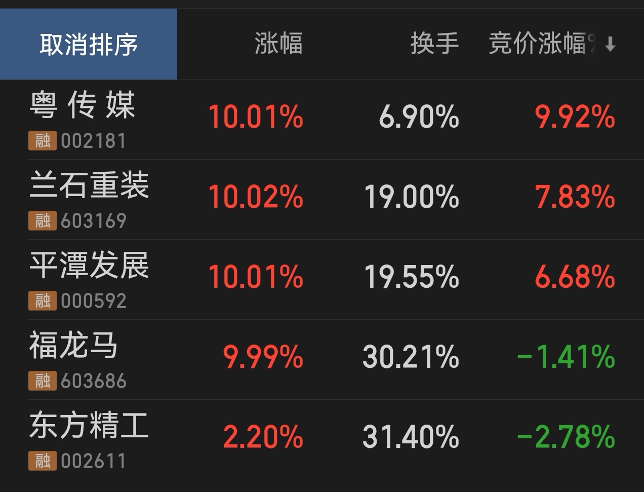 这是我的一个竞价竞价前5策略昨日的竞价搜索到标的。在大盘整体回调的同时这种搜索方法反而成功率很高。我做了回测,发现这也是一种找连板/龙头的好方法。
